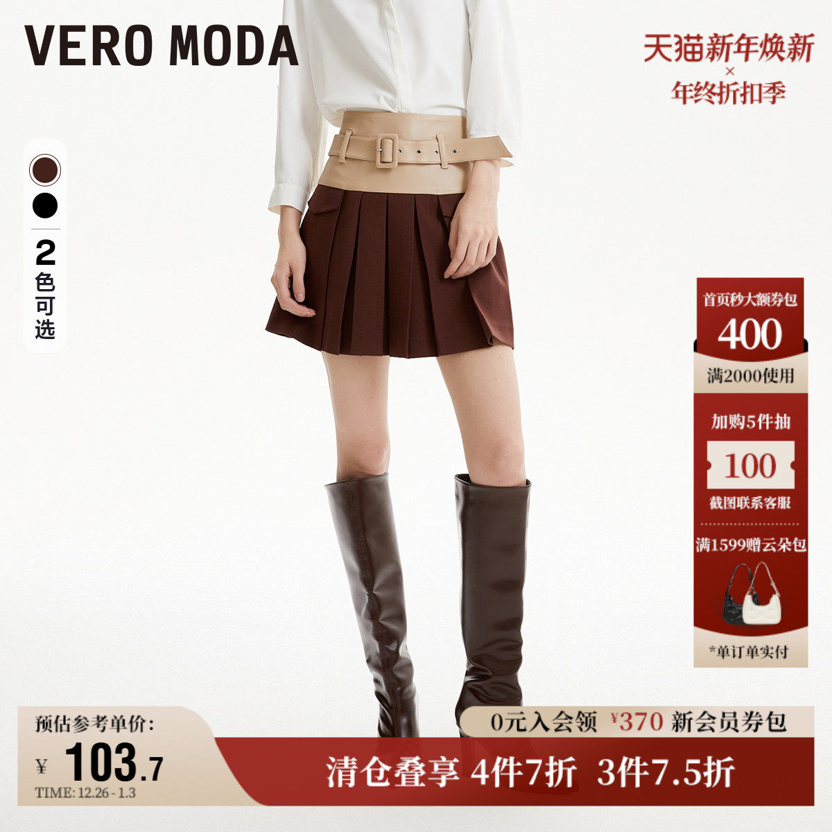 Vero Moda奥莱半身裙秋冬清仓时髦高街拼接pu百褶短裙女百搭流行