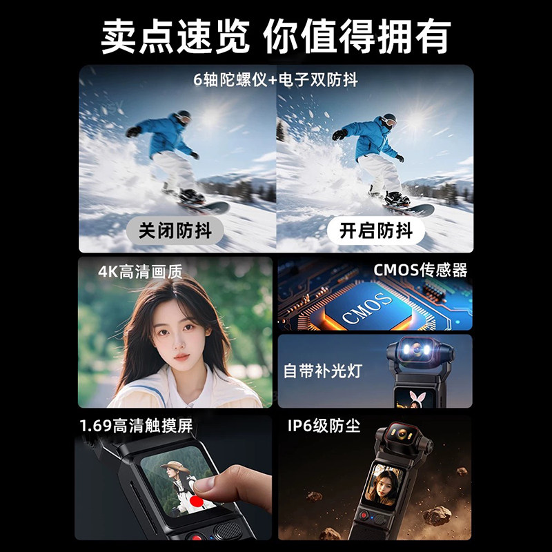 4k防抖运动相机录音录像机摩托骑行记录仪执法摄像机户外钓鱼记录