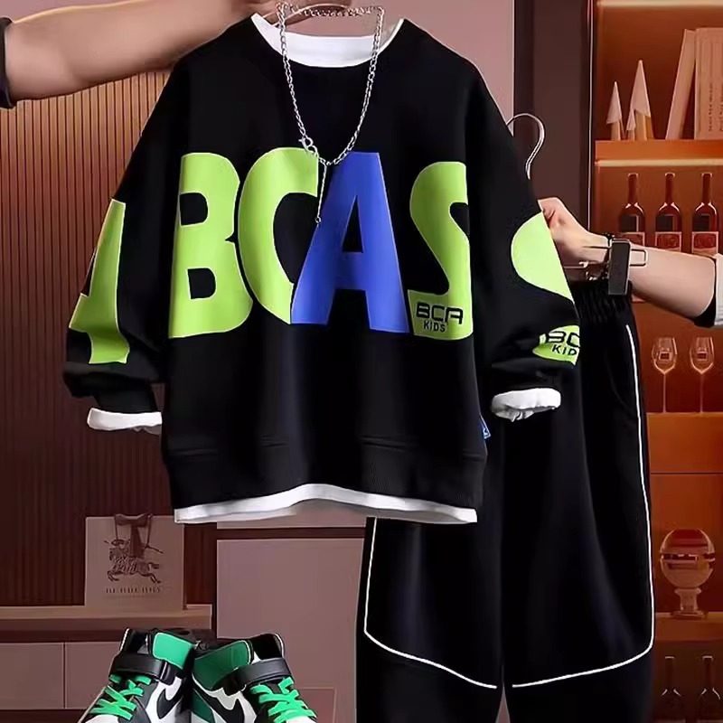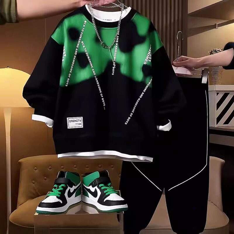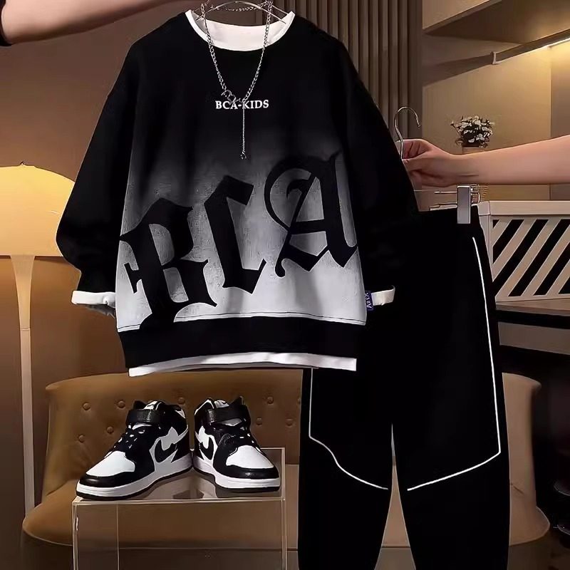 男童秋冬装加绒套装2025新款帅气中大童装春秋款运动衣服时髦男孩
