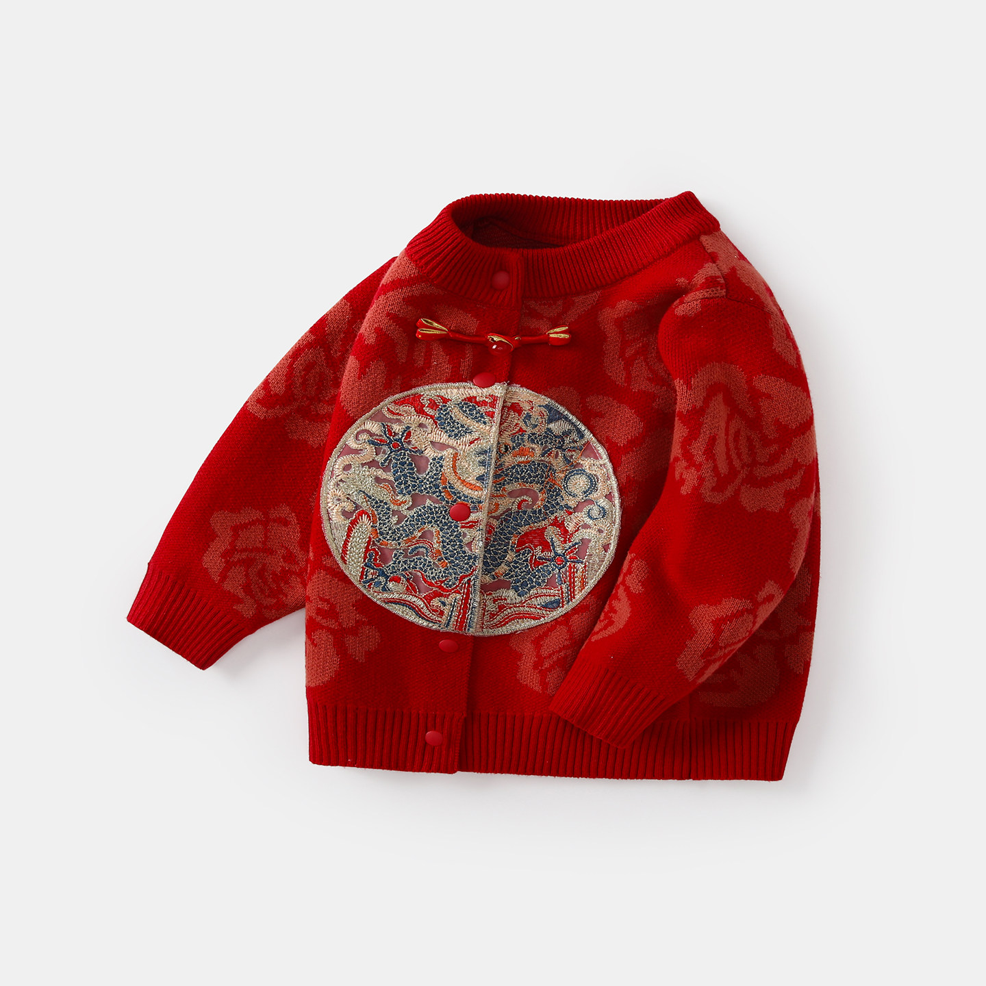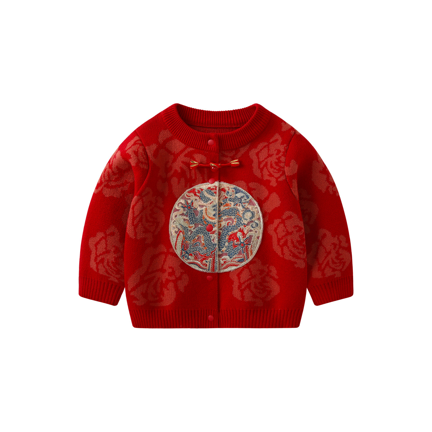 婴儿毛衣套装秋冬新款男宝宝加绒两件套男童冬装红色喜庆拜年衣服