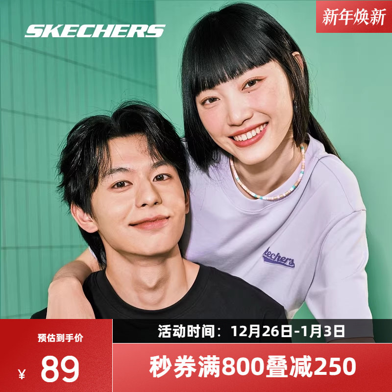 斯凯奇短袖男女款情侣宽松体恤圆领运动T恤凉感上衣时尚百搭