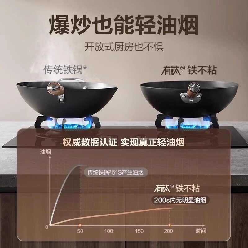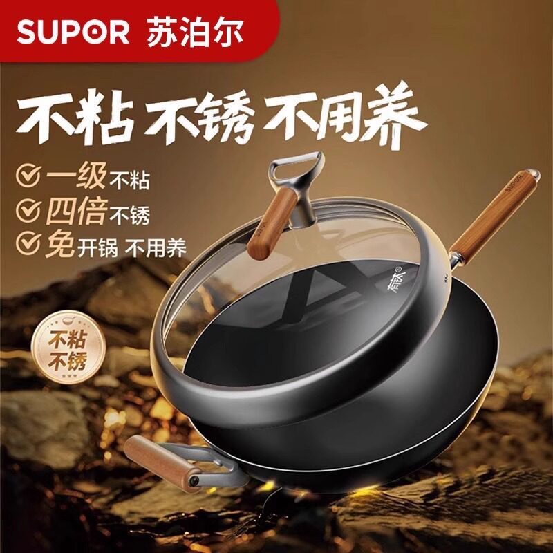 【商超同款】苏泊尔有钛无涂层铁锅家用炒锅不粘锅复合铁炒菜炒锅