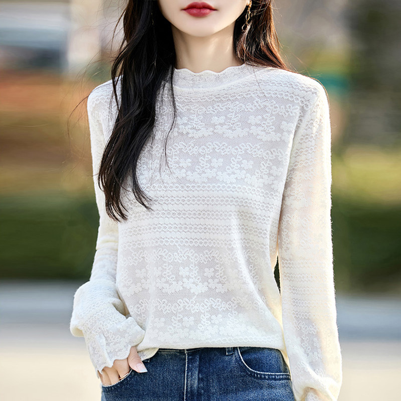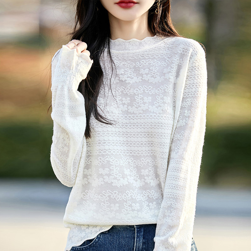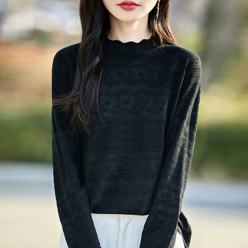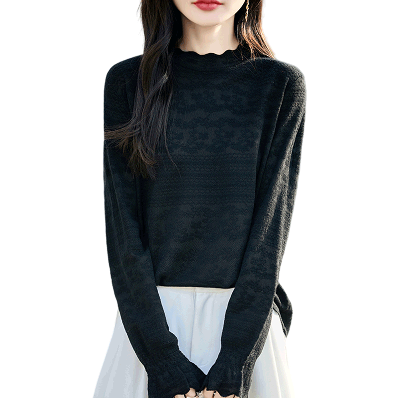 撤柜撤标(A)领提花针织蕾丝打底衫女春秋款内搭洋气大码女装毛衣