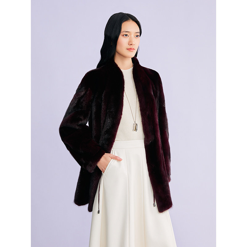 YINER音儿专选2026春季新款法式奢感一手长立领水貂毛皮草外套
