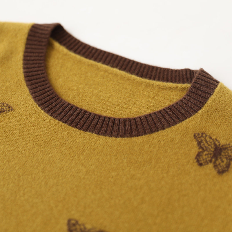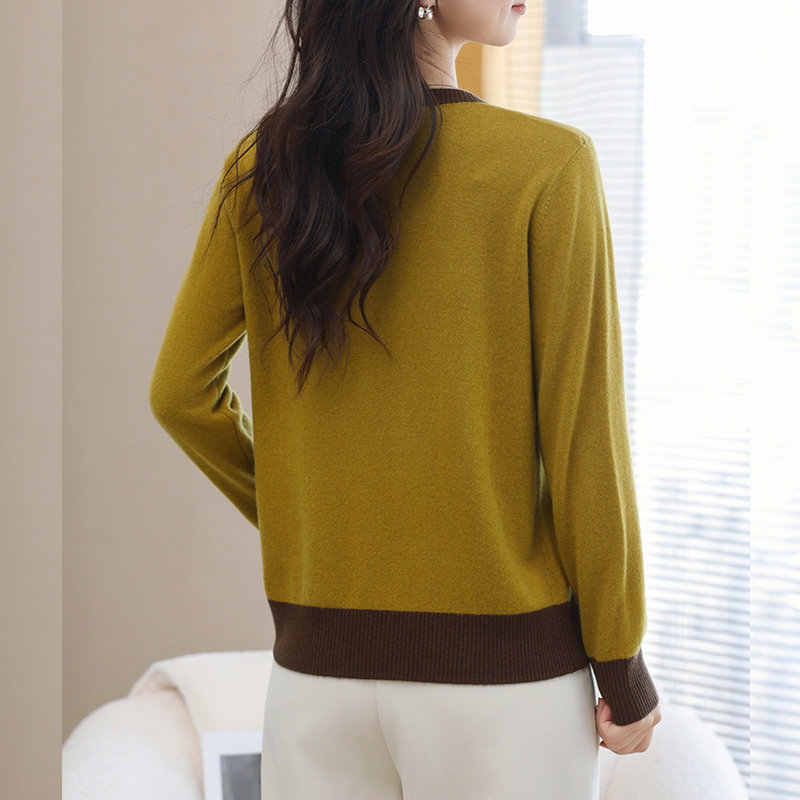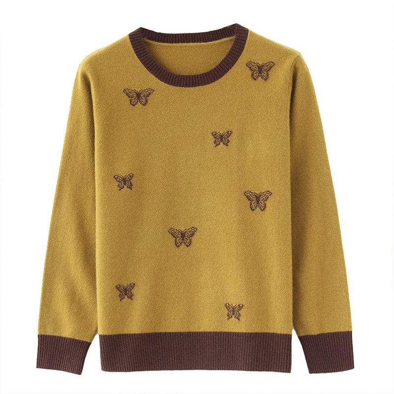 恒源祥100%羊毛衫女圆领毛衣春秋新款品牌宽松妈妈针织打底衫上衣