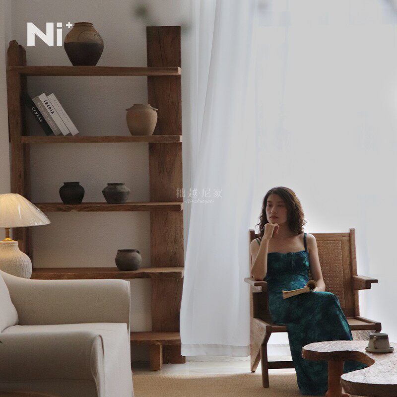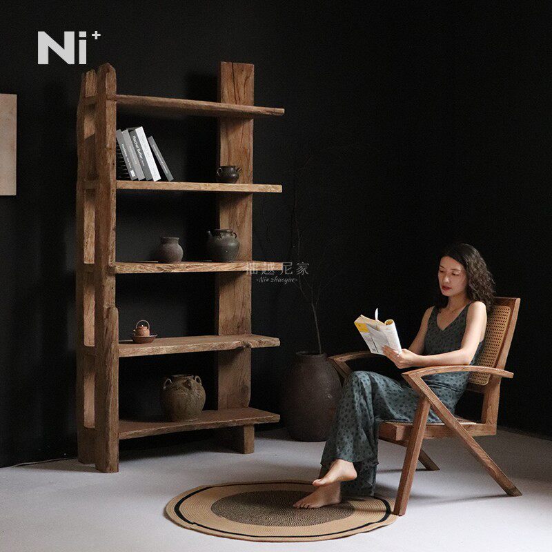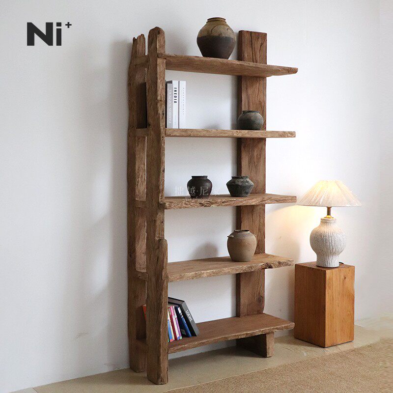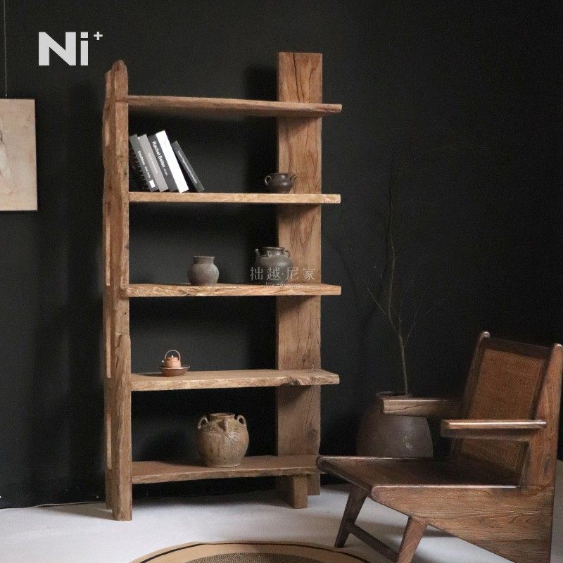 Ni+尼家侘寂风书架复古实木博古架咖啡厅民宿书房靠墙展示置物架