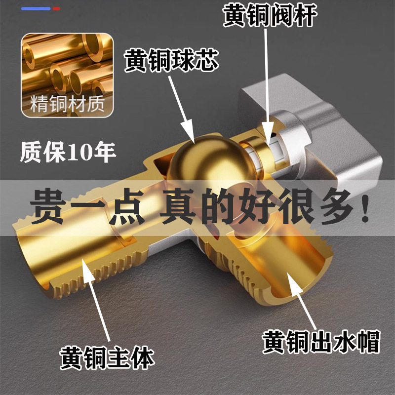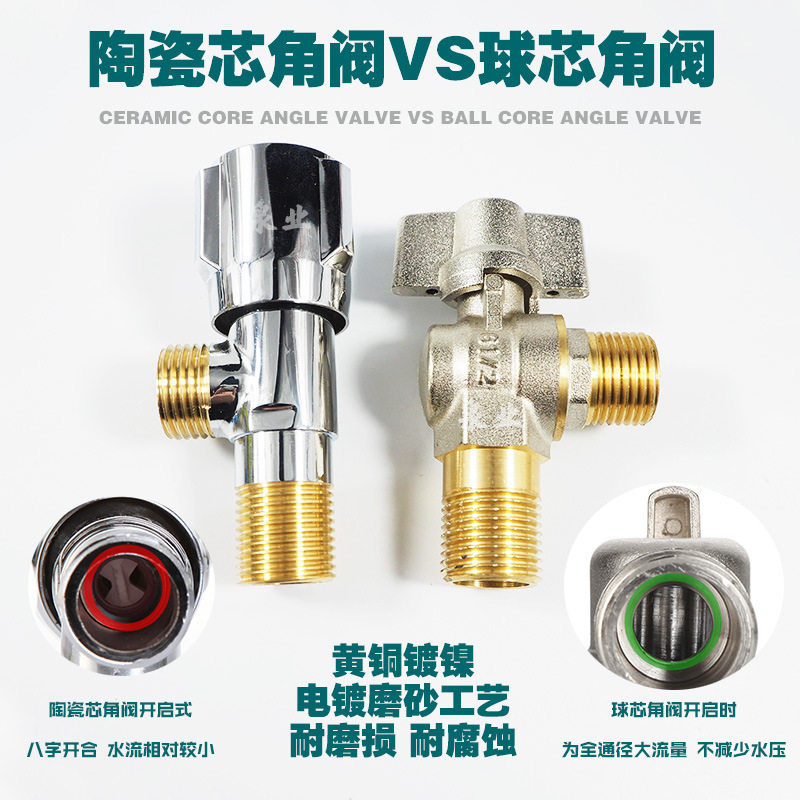 三角阀纯全铜大流量4分冷热水通用6分热水器通径球芯心角阀门开关