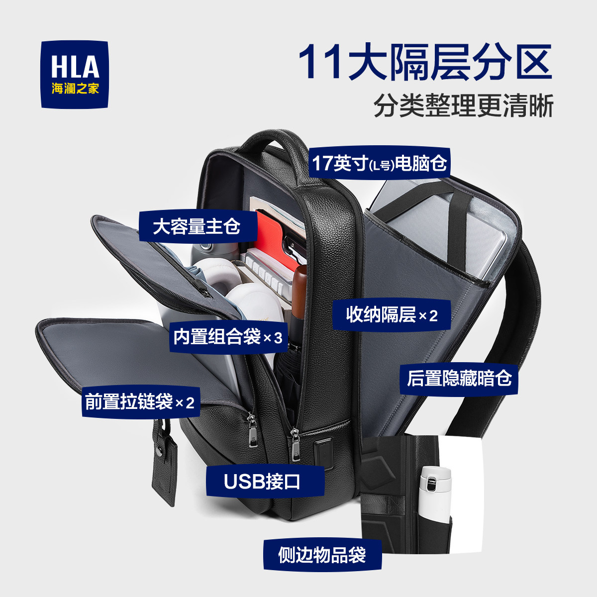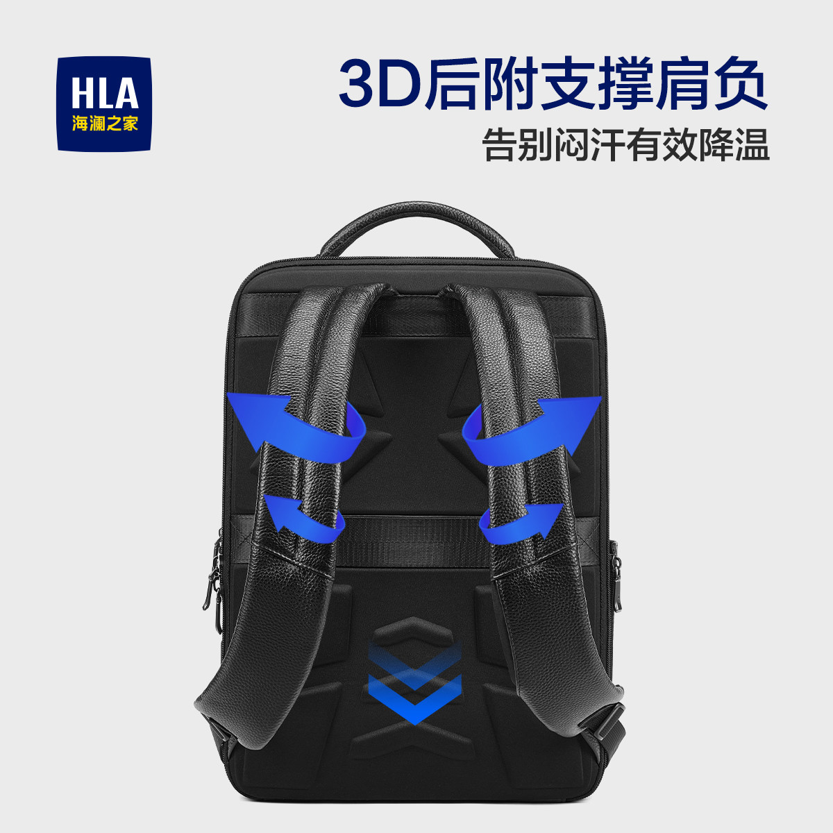 HLA/海澜之家男士双肩背包真皮商务通勤出差电脑背包高端头层牛皮