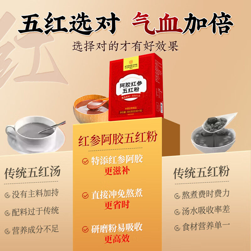 五红粉阿胶红参红枣枸杞五红汤即食营养代餐粉补气养血冲饮补血