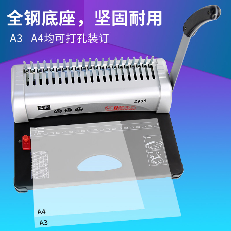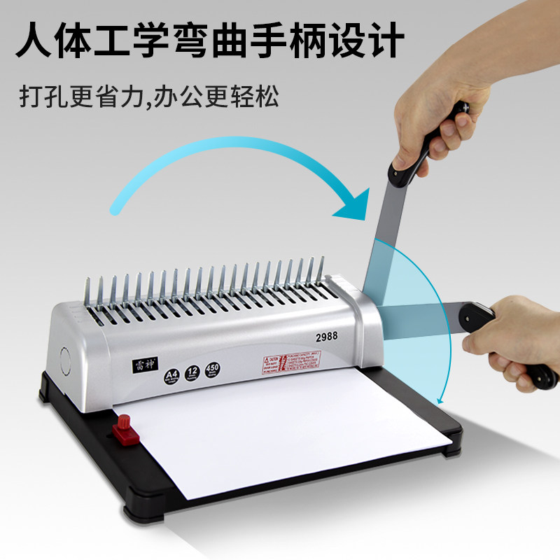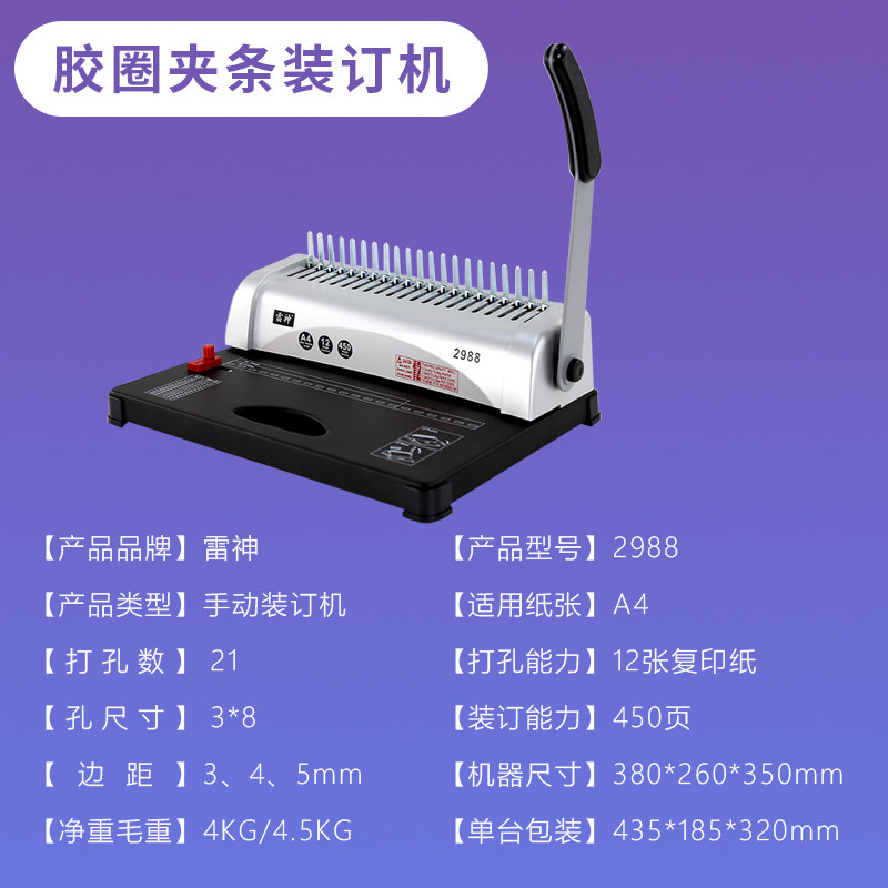 雷神2988梳式财务装订机手动胶圈夹条打孔21孔A3A4纸文件档案合同资料标书封面打孔机10孔夹条会计凭证装订机