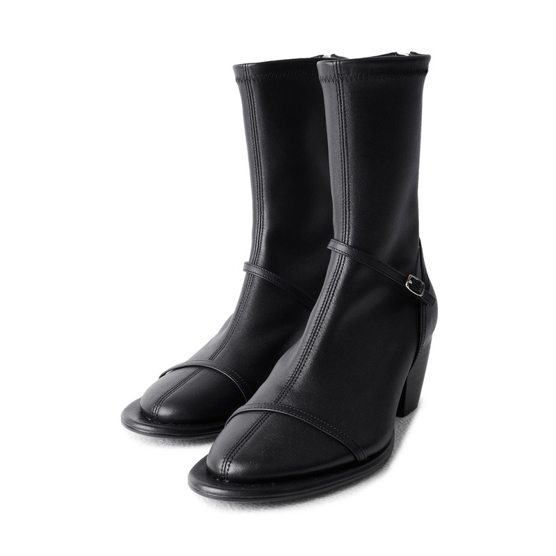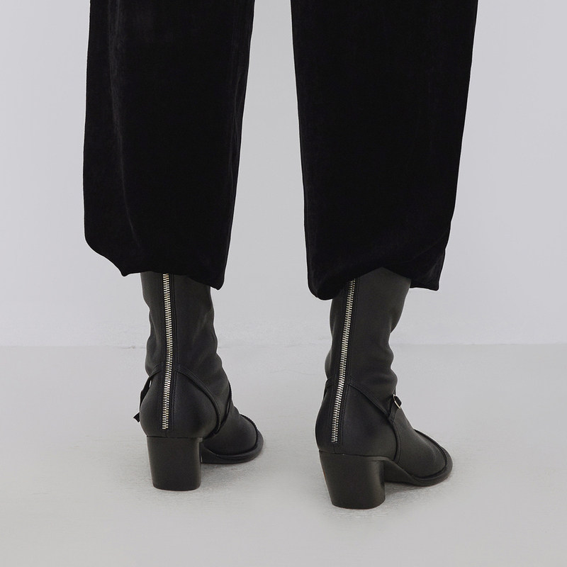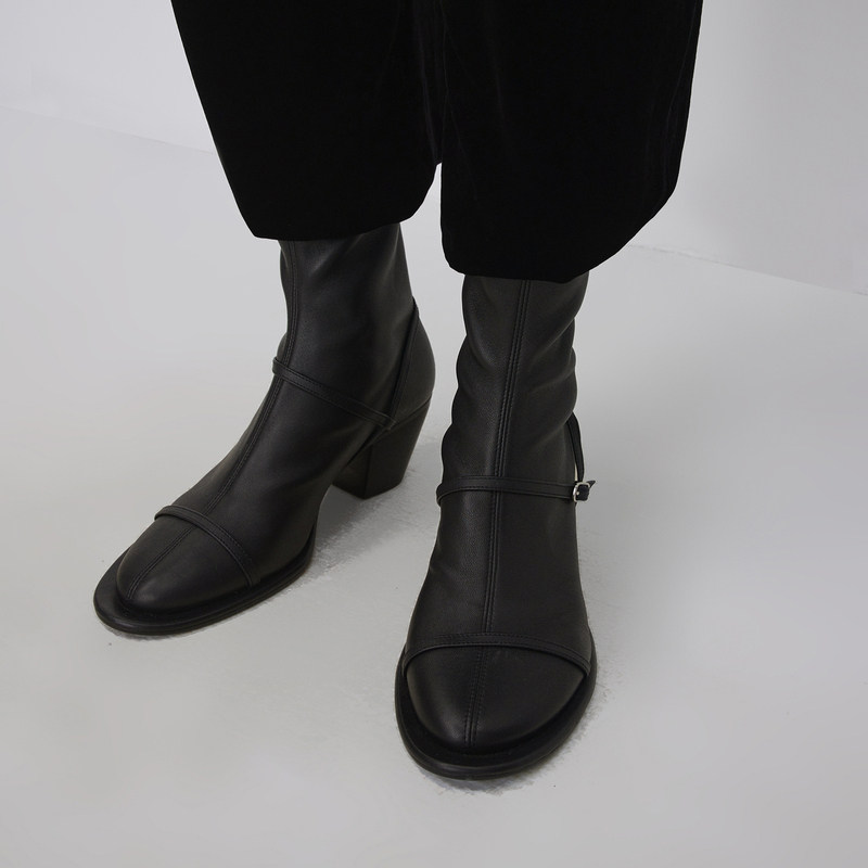 LESS秋季羊皮革女式鞋子优雅圆头中跟低筒靴3N9M11960