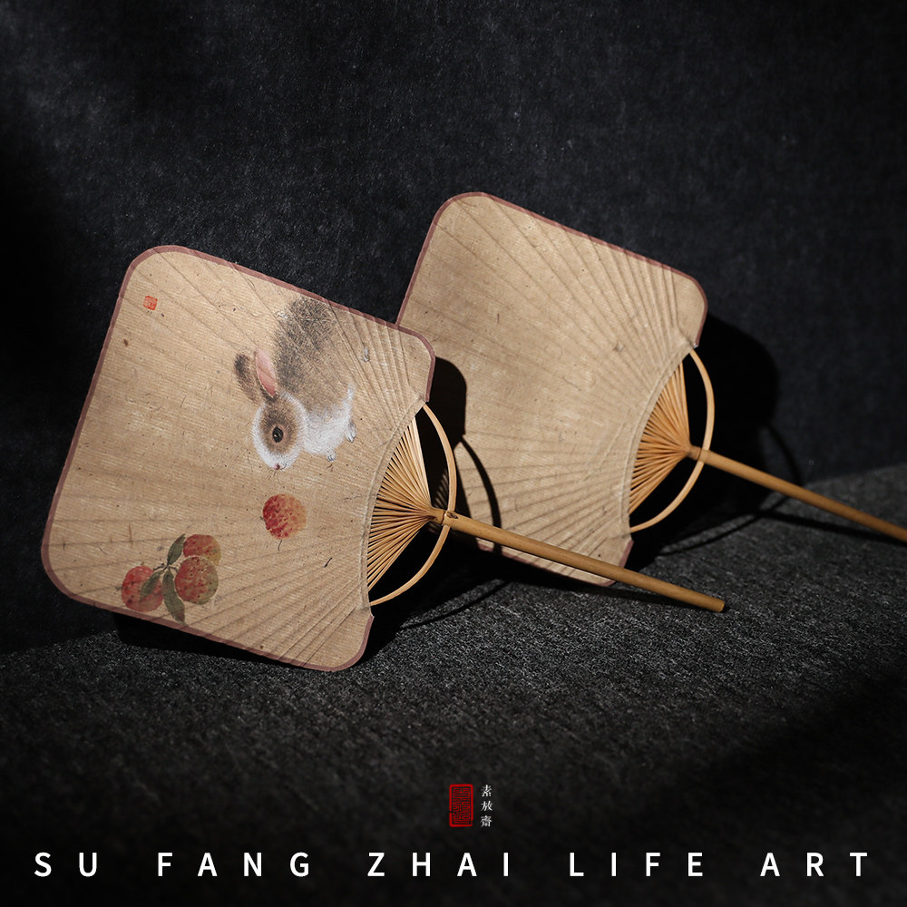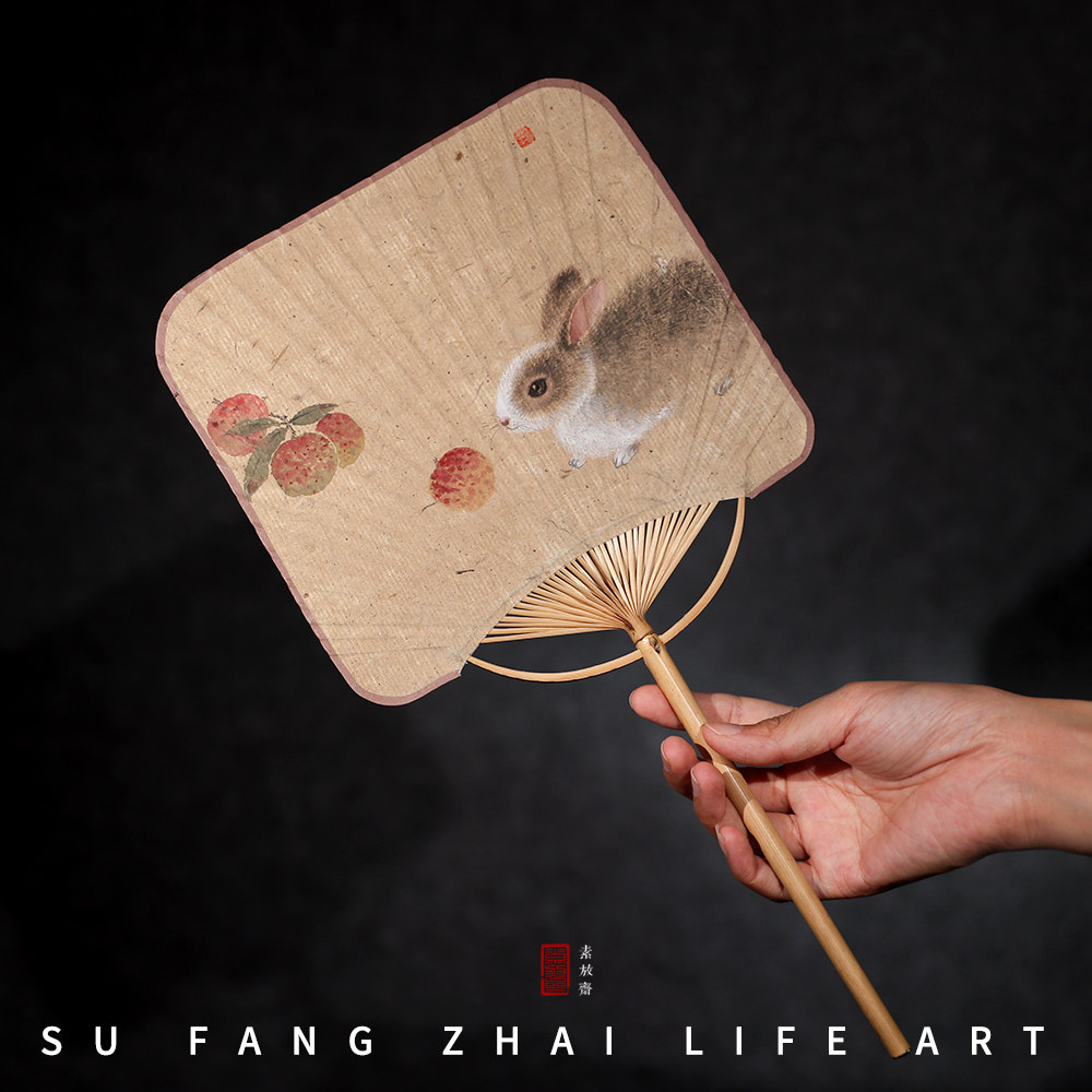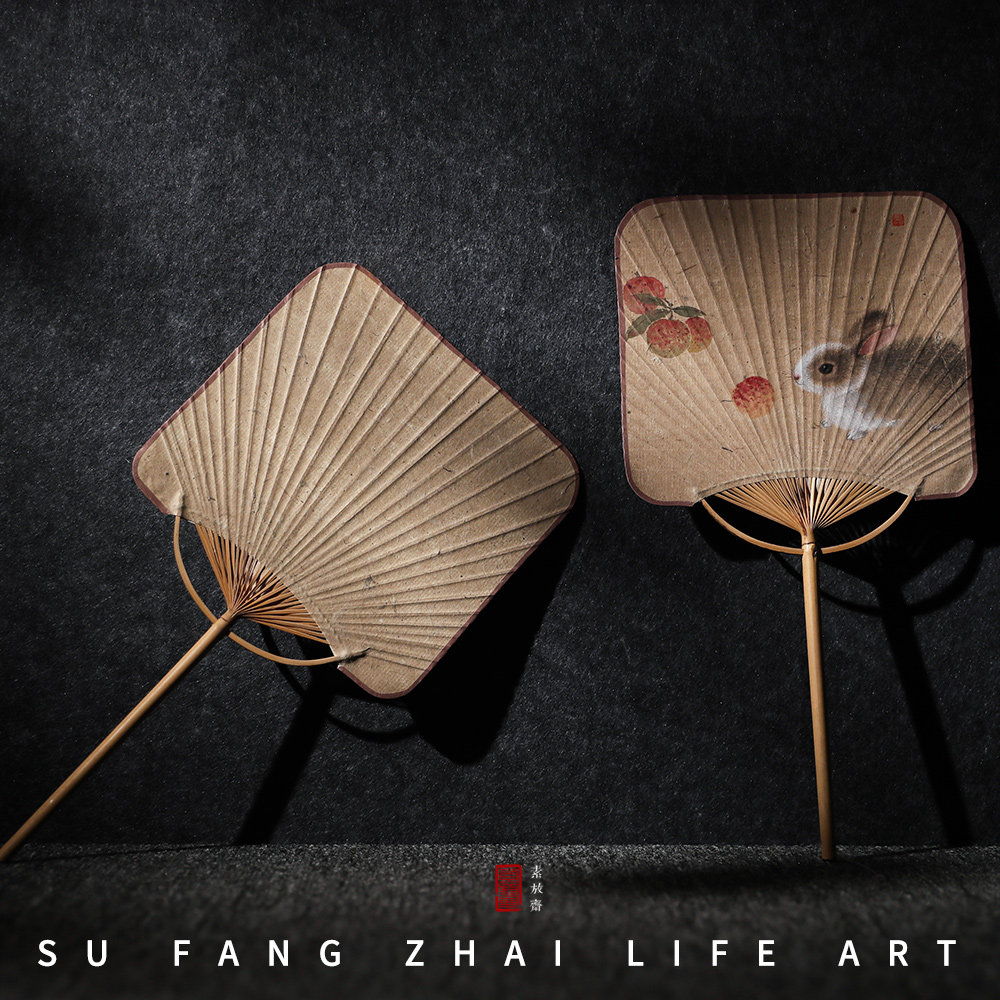 素放斋古风空白宣纸团扇手绘文字复古宫扇空白DIY仿古书画创作四
