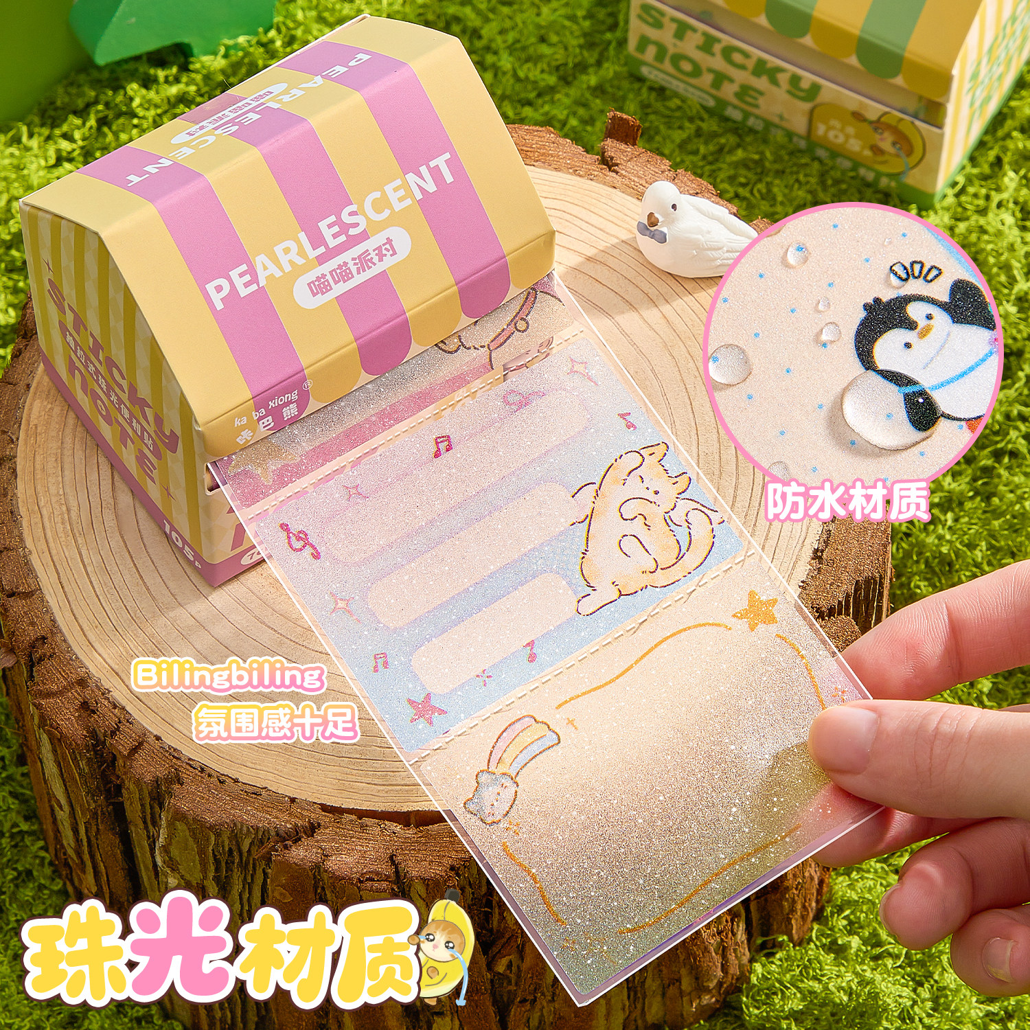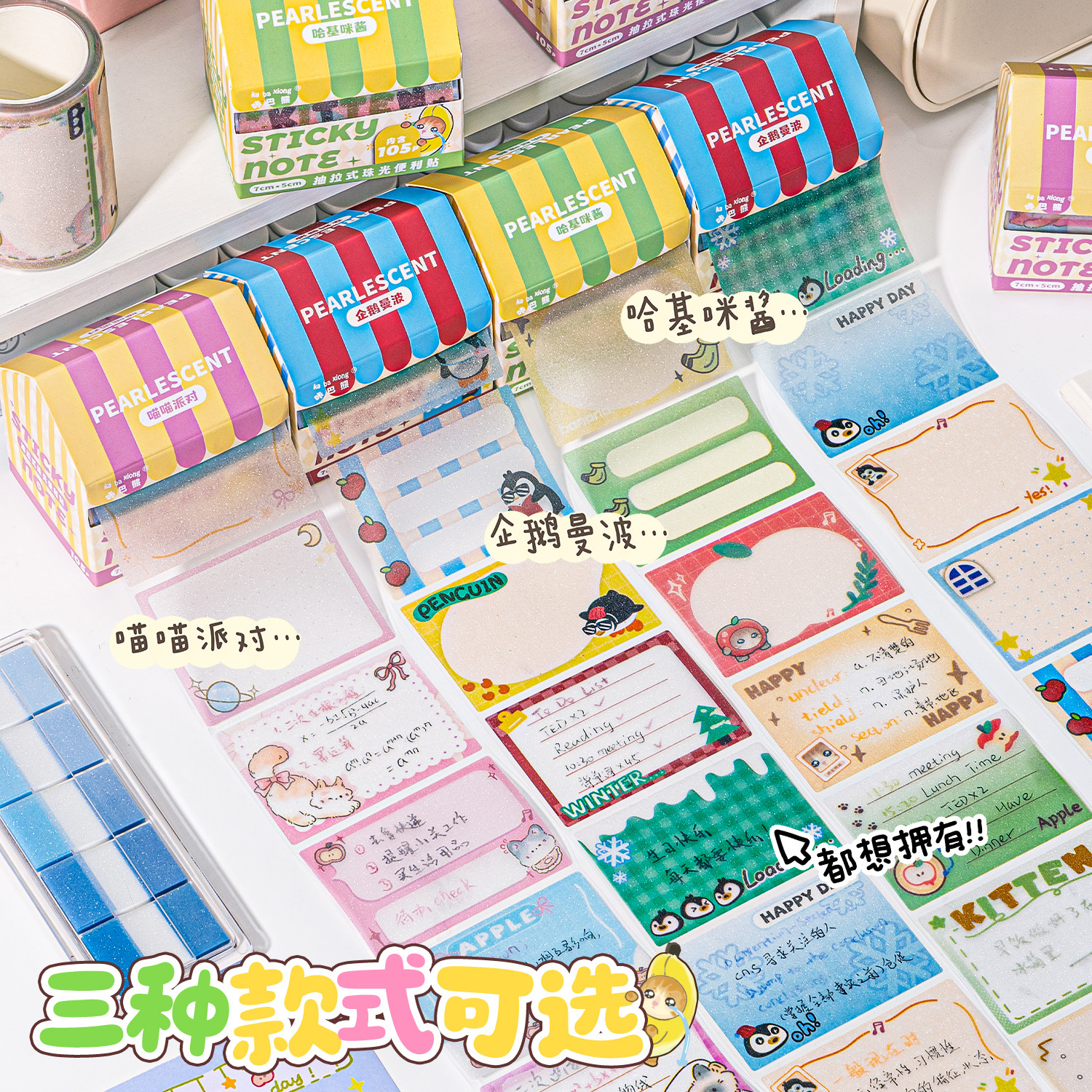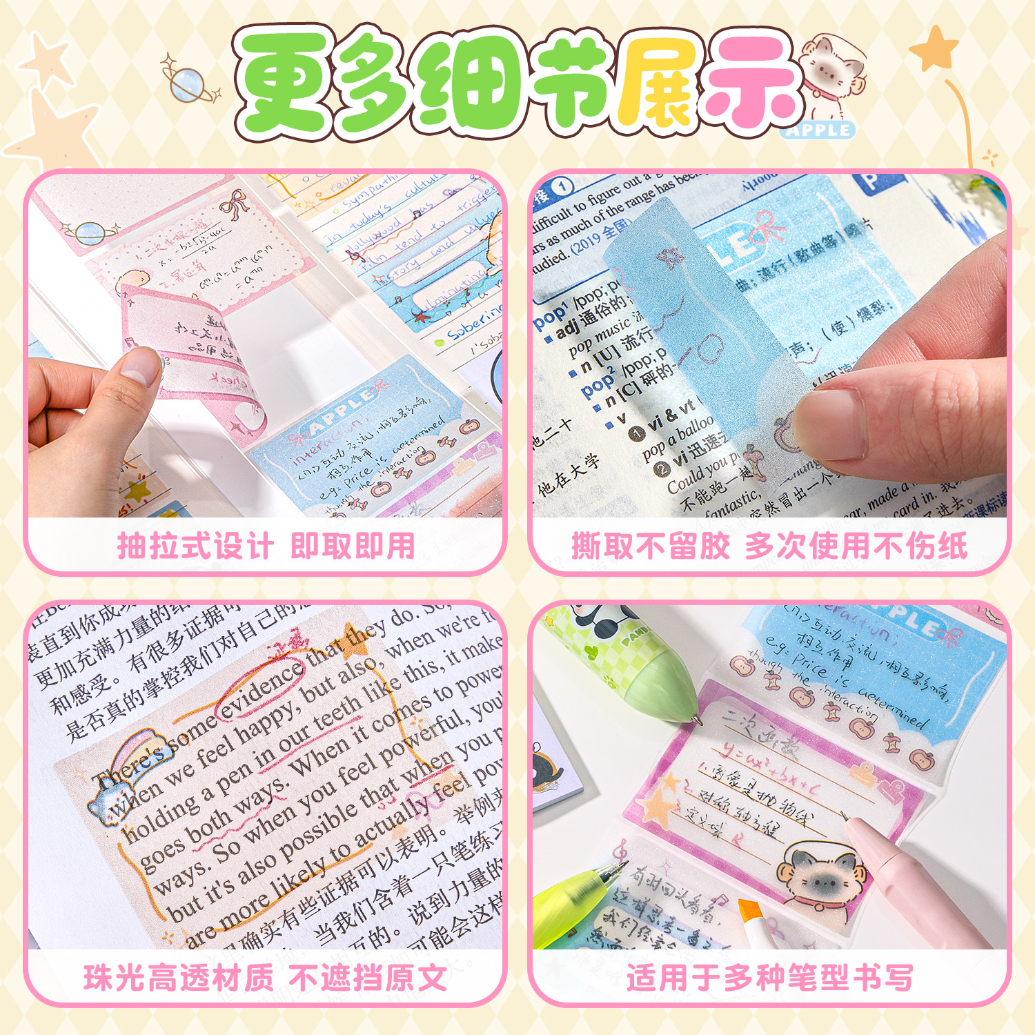 【房子造型】咔巴熊透明珠光便签贴小学生专用便签贴纸抽拉式高颜值有粘性便签可撕错题便利贴全粘式任意贴纸