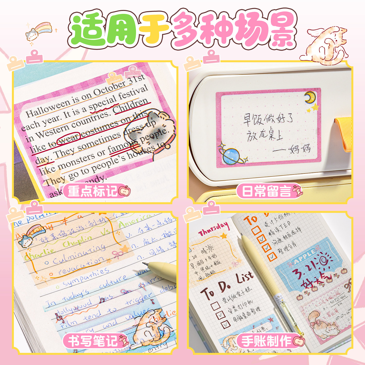 晨光可立便利贴优事贴卡通动物可爱创意造型可撕便签纸留言贴高颜值初高中学生用手帐贴考研办公室有粘性贴纸