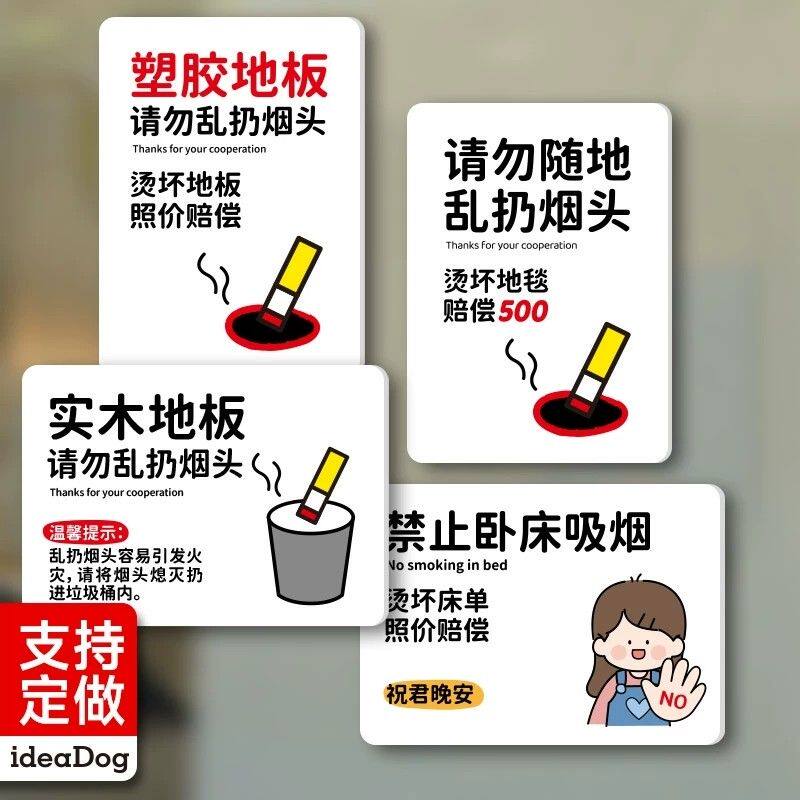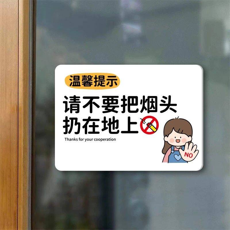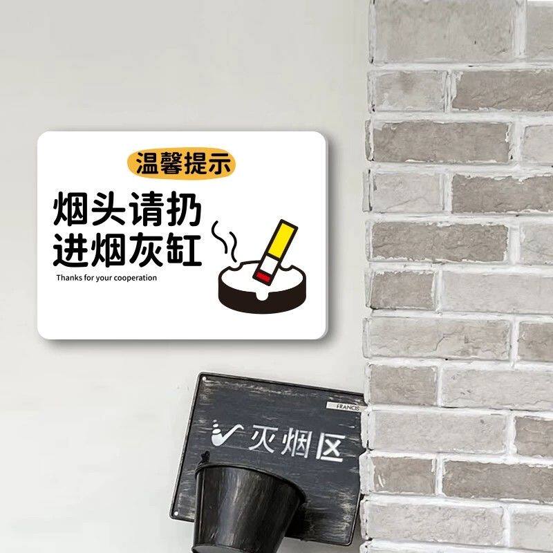 烟头请扔烟灰缸烟头不落地标识请勿将烟头垃圾杂物不干胶贴纸