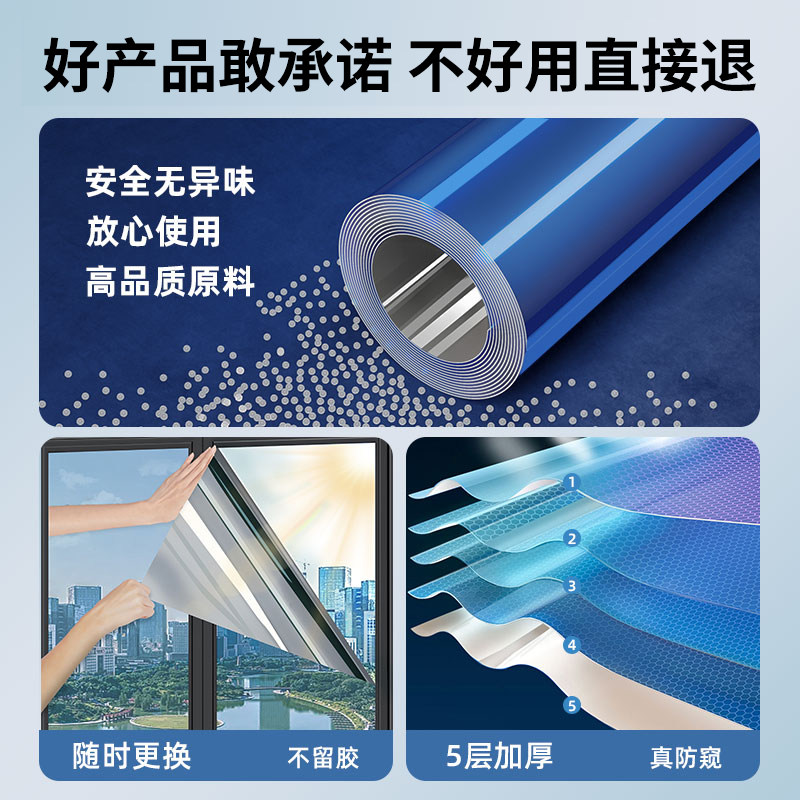 单向透视玻璃防窥膜窗户防晒隔热膜窗贴外面看不到里面单透玻璃膜