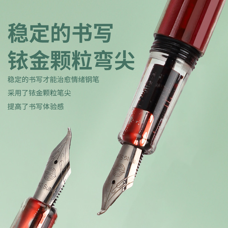 永生3024教师批改专用美工尖大容量弹簧活塞按压钢笔透明款