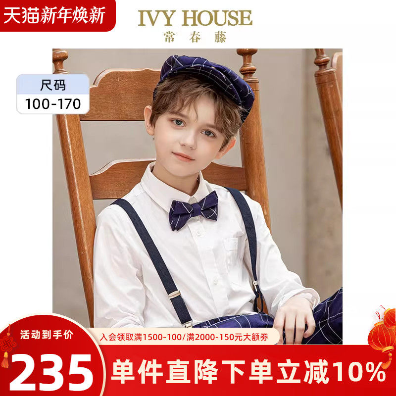 IVY HOUSE常春藤男女童装春款 儿童基础长袖白衬衫百搭学院亲子装