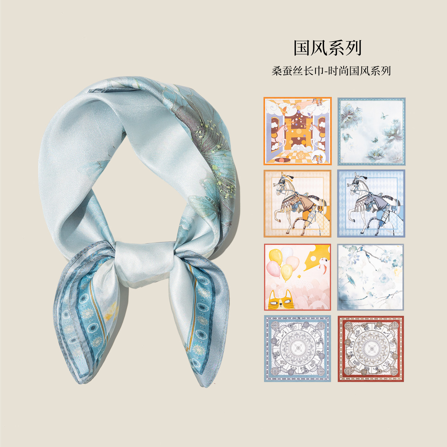 春夏季新品真丝方巾女桑蚕丝系脖领巾女士丝巾英伦小方巾送礼礼品