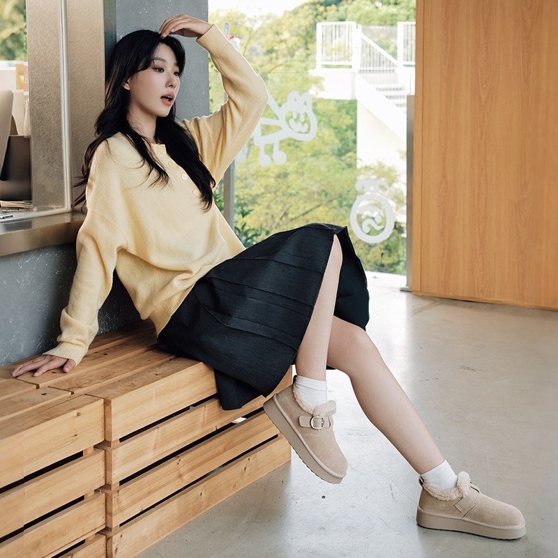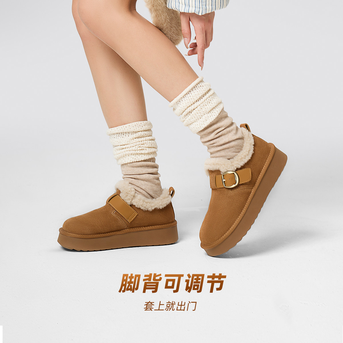 Chio2nd南风 雪地靴棉鞋2024新款冬季女士厚底加绒皮毛一体鞋子