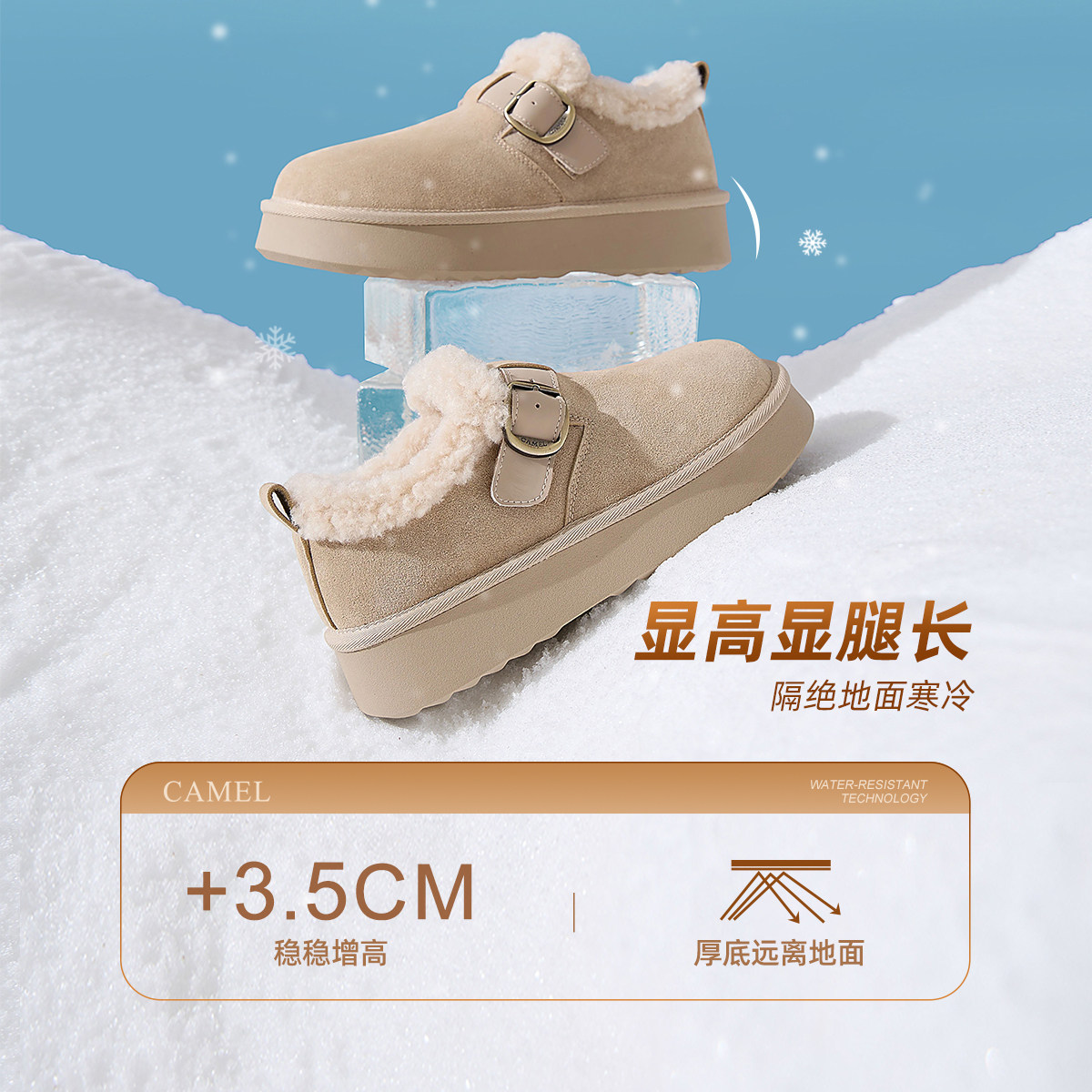 骆驼女鞋2025冬季新款棉拖鞋厚底加绒保暖雪地靴低帮外穿勃肯鞋女