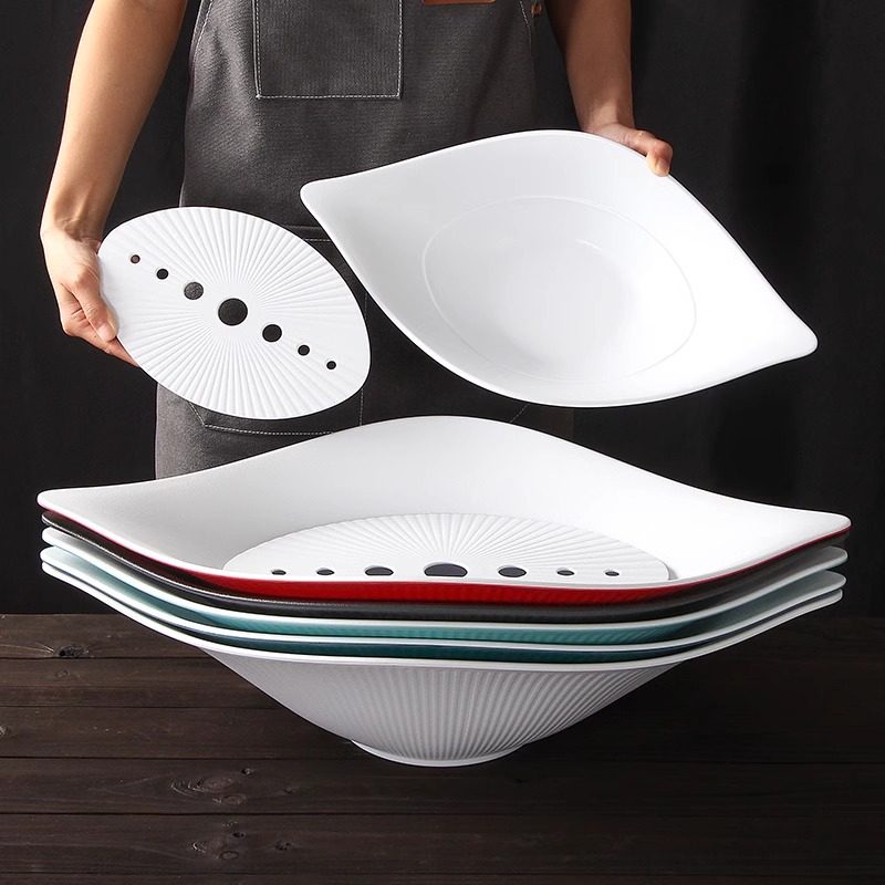 白色火锅店餐具潮汕牛肉盘火锅自助密胺配菜塑料蔬菜桶碗创意商用