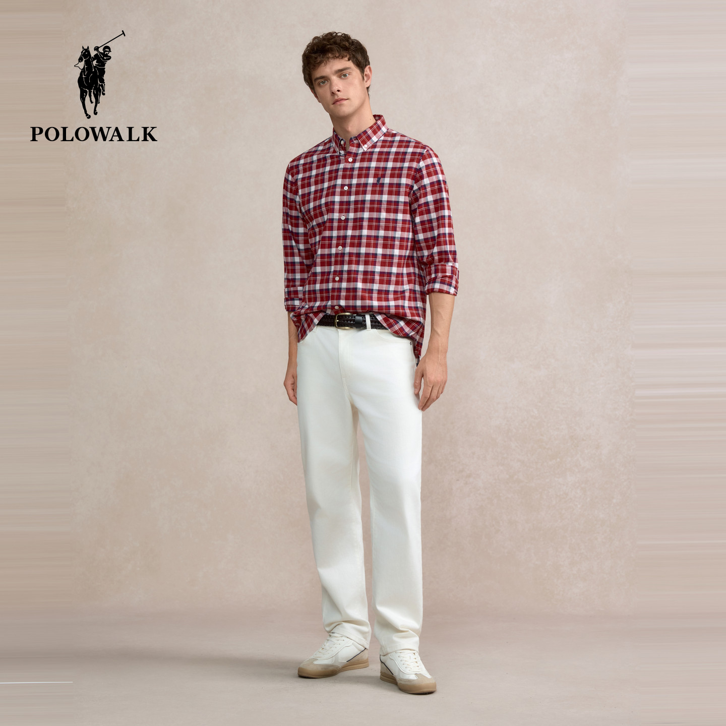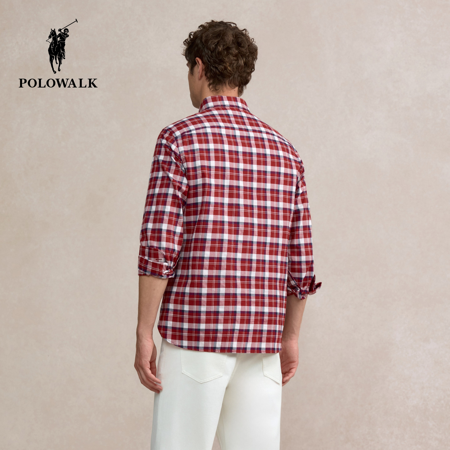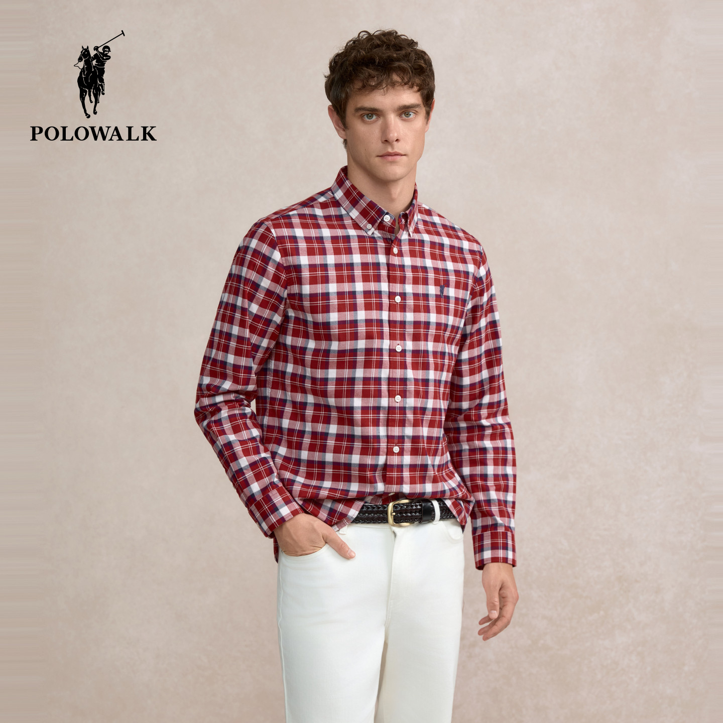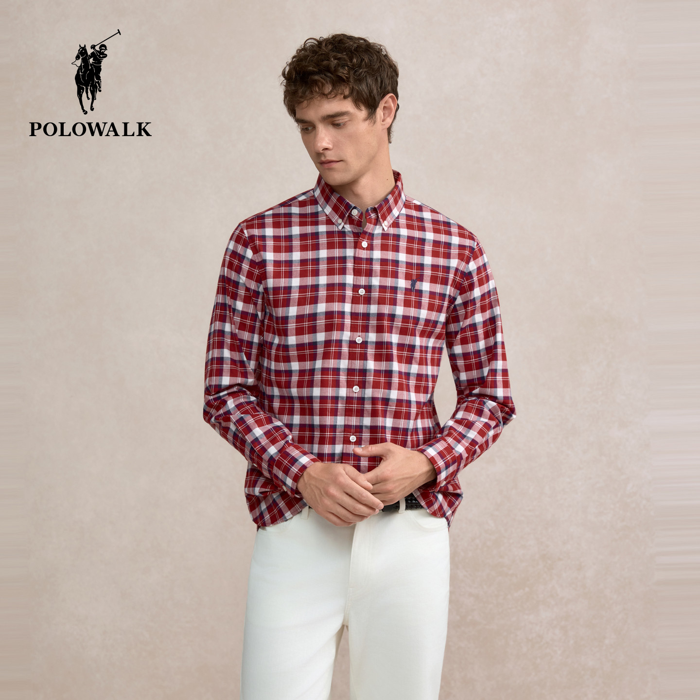 【100%纯棉】POLOWALK男装长袖衬衫2026春季新品格纹翻领衬衣男式