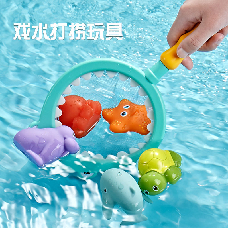 新款宝宝洗澡玩具乌龟喷水网捞鱼鲨鱼儿童动物捏捏乐漂浮戏水玩具
