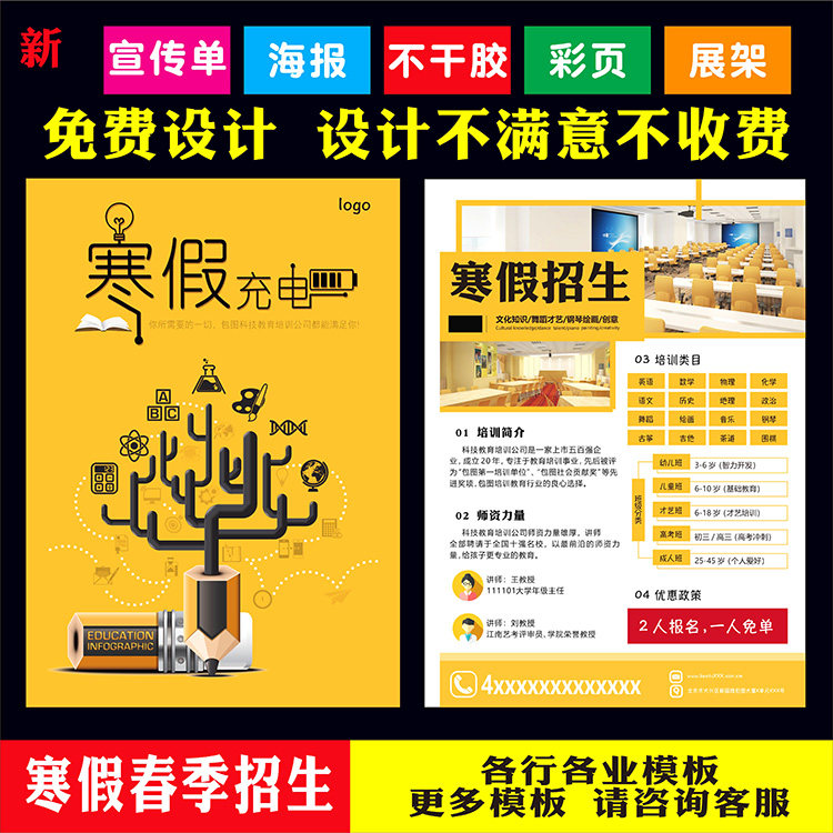 新学期幼儿园暑假寒假培训辅导招生宣传单海报定制做印刷设计彩页