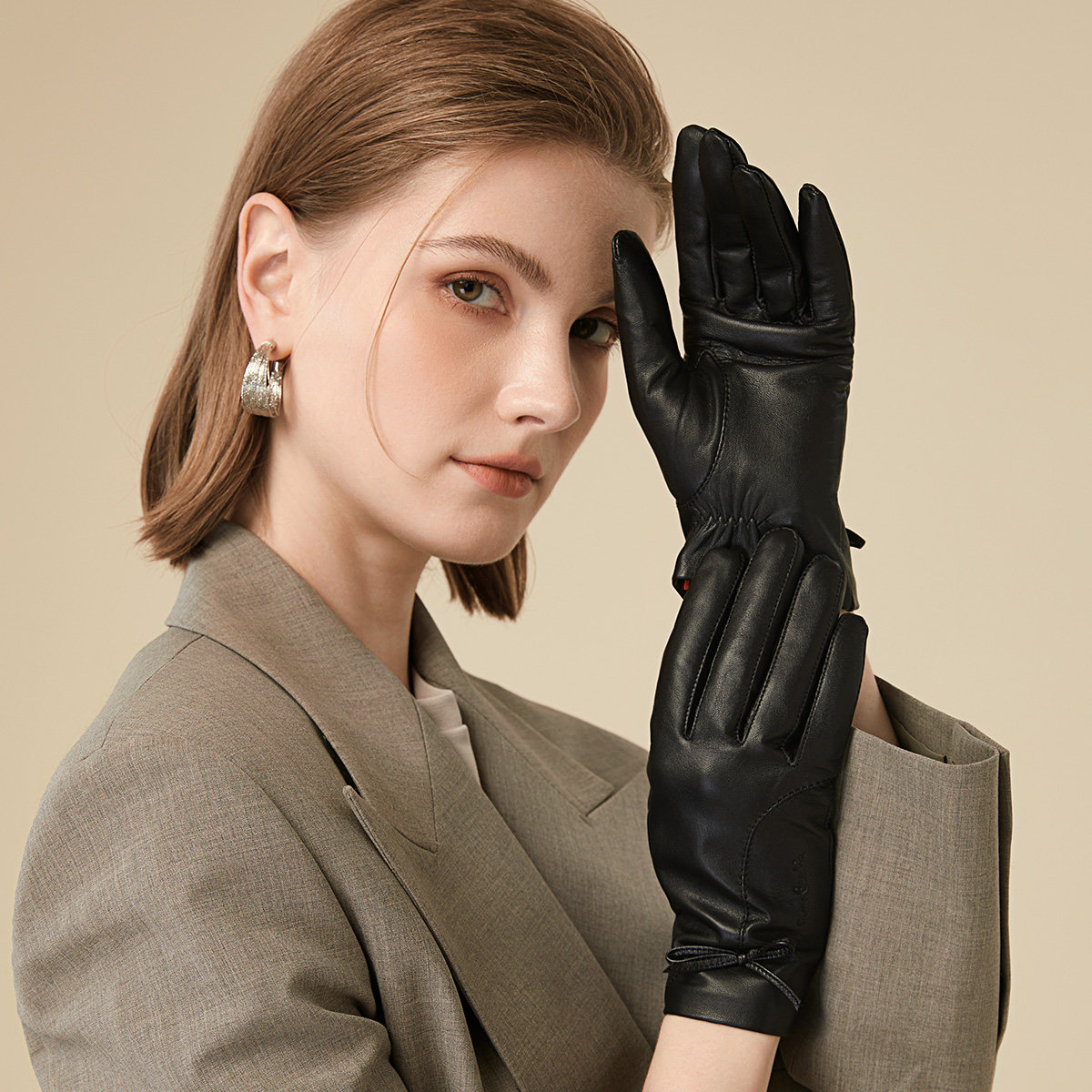 皮尔卡丹女士羊皮手套冬季骑行防寒手套加厚保暖触屏女式真皮手套