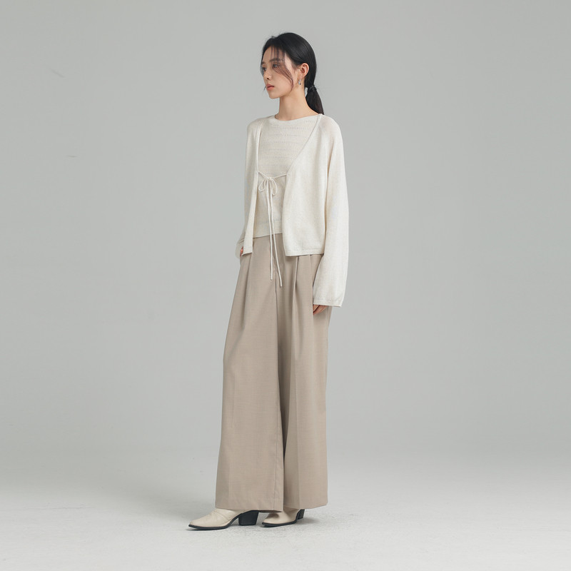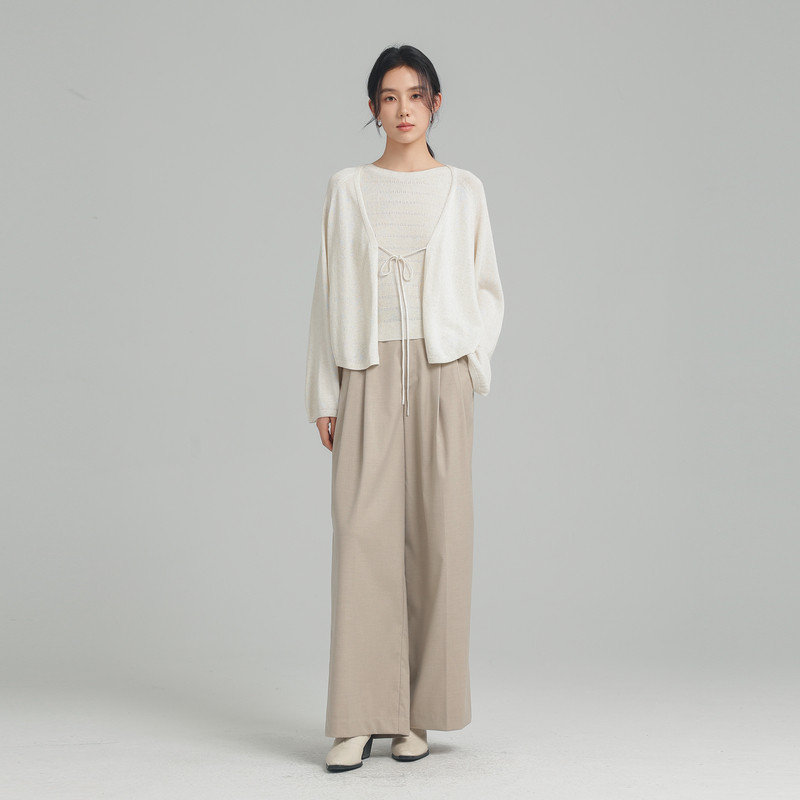 黑标BAIZHUO春季新款休闲通勤宽松垂坠感阔腿西装长裤女AZ51CK377