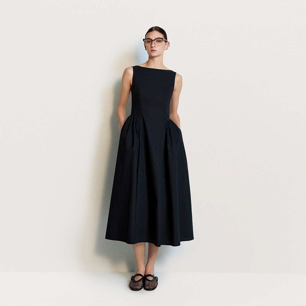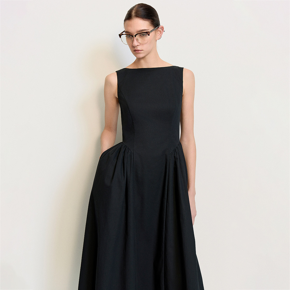 QY2 2026年春夏新款女装黑色无袖简约风格宽松版型连衣裙