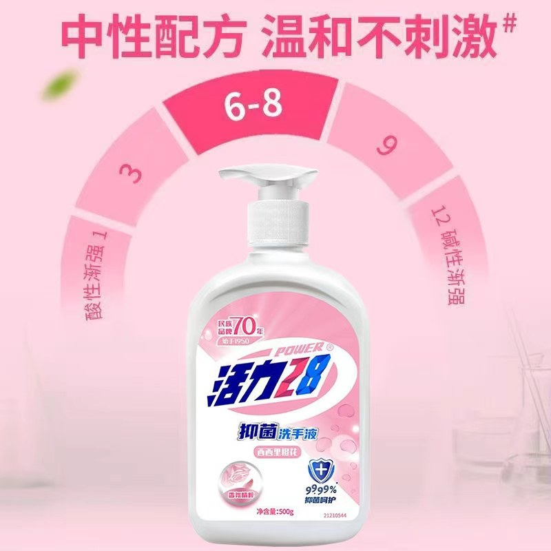 活力28温和护手润肤洗手液500g瓶按压便携式长效抑菌儿童通用