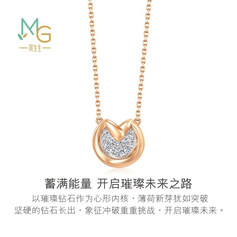 周生生萌芽系列钻石项链18k金套链女生锁骨链93984N