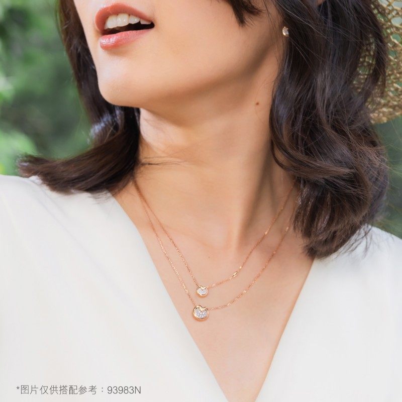 潮宏基悦己小幸运红18k项链玫瑰金锁骨女坠链套链礼物纪念礼物