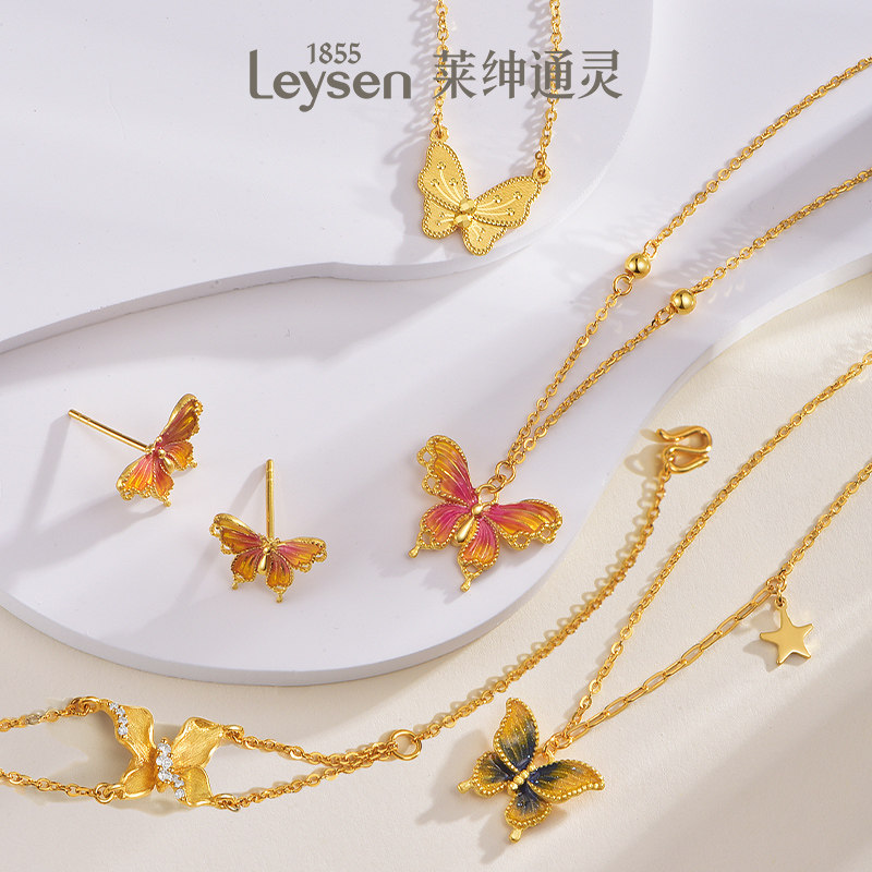 潮宏基倾玉18K金和田玉项链彩金碧玉套链生日礼物国风高级感