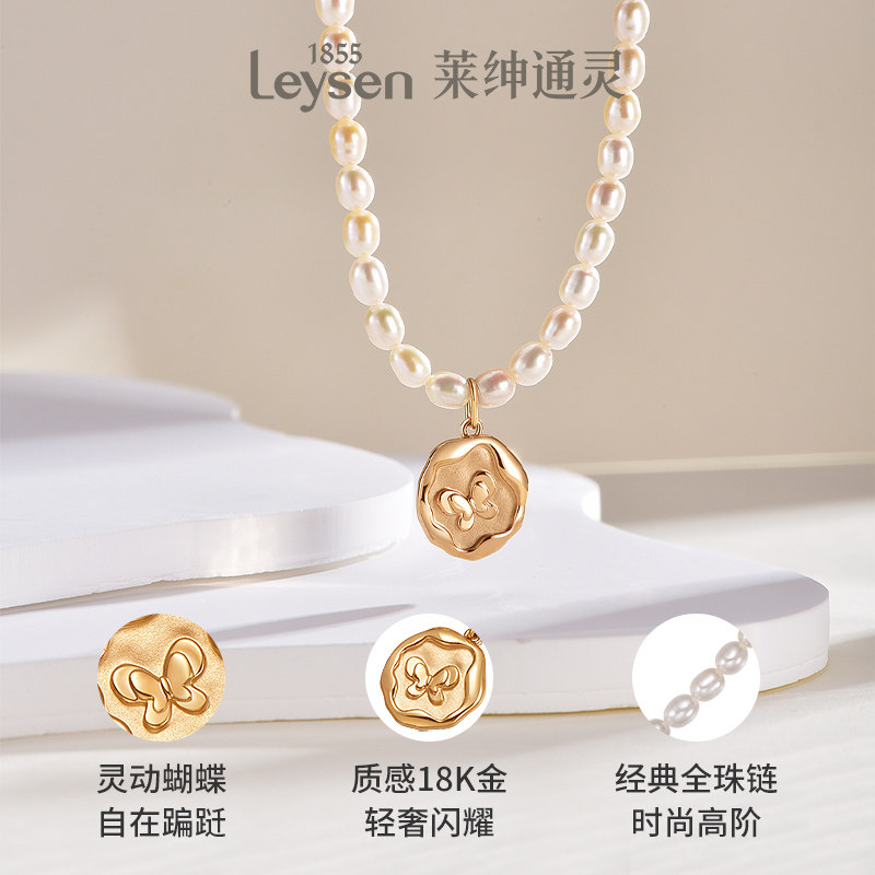 莱绅通灵珠宝 Destiny系列 18K金小米珠淡水珍珠项链 珠链