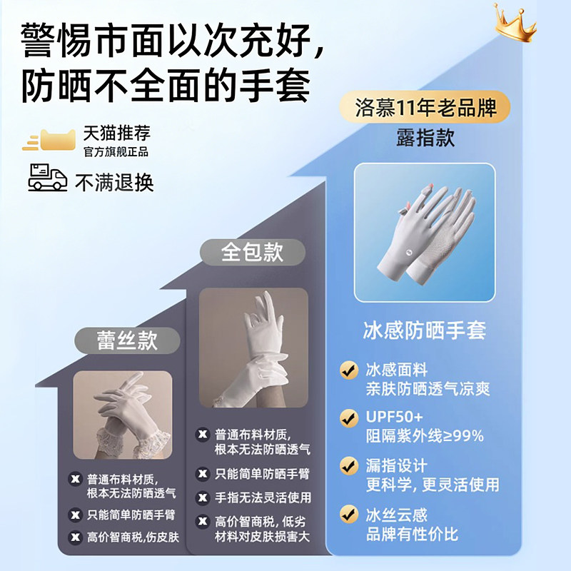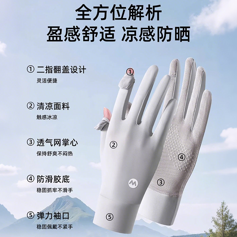 防晒手套女防紫外线露二指触屏冰丝袖套夏季遮阳骑行电动专用薄款
