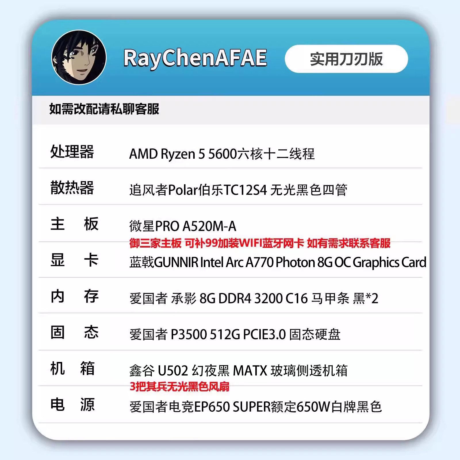 A770+R5 5600 高颜值海景房 高性能DIY游戏生产力电脑主机