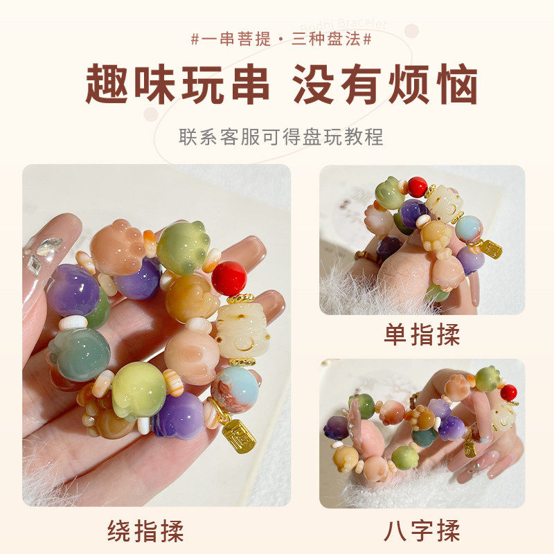 紫多宝猫爪菩提手串真品学生女绕指柔盘玩菩提根文玩佛珠手链手持
