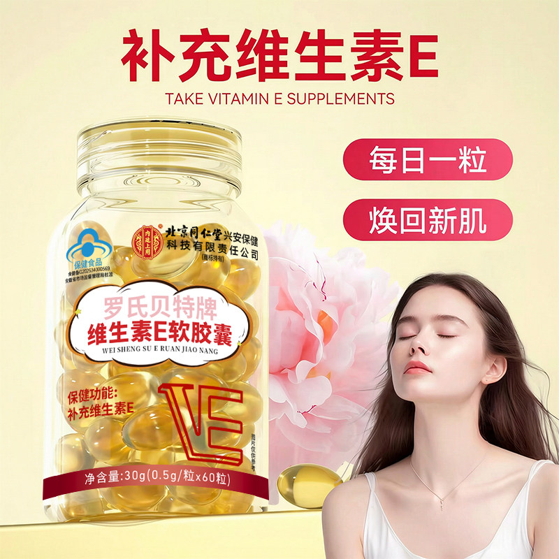 北京同仁堂天然维生素e软胶囊官方旗舰店正品美白淡斑去黄涂脸部