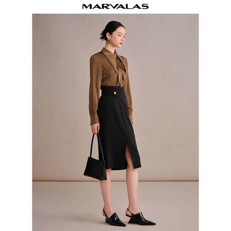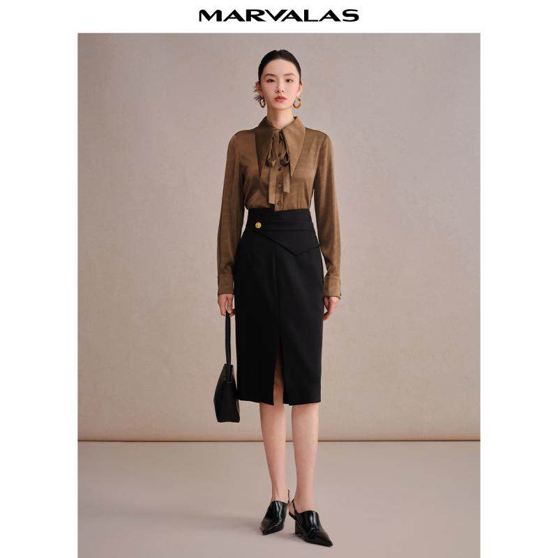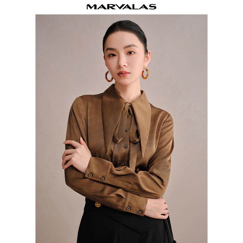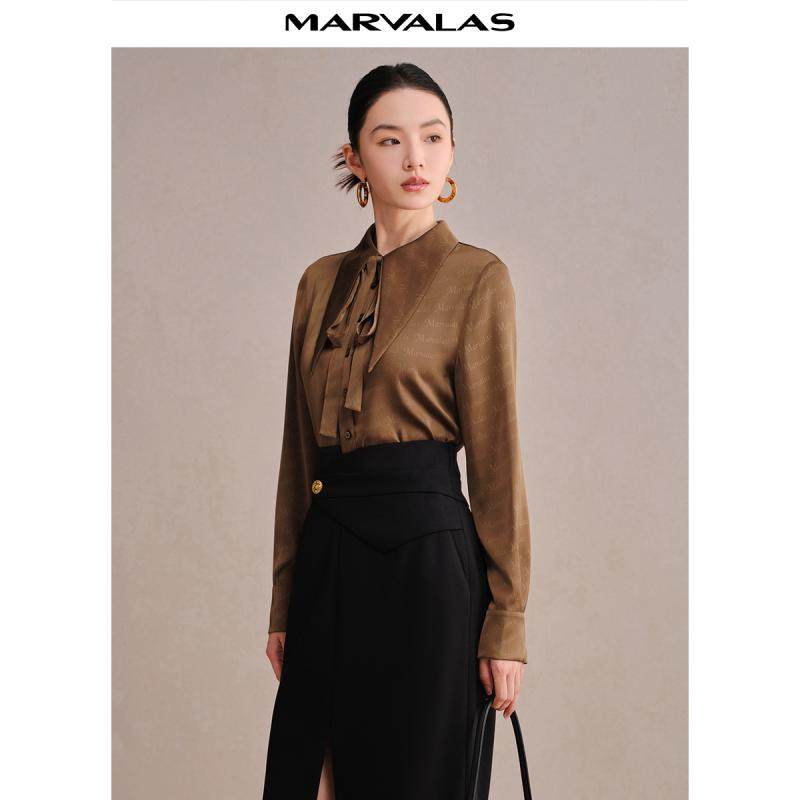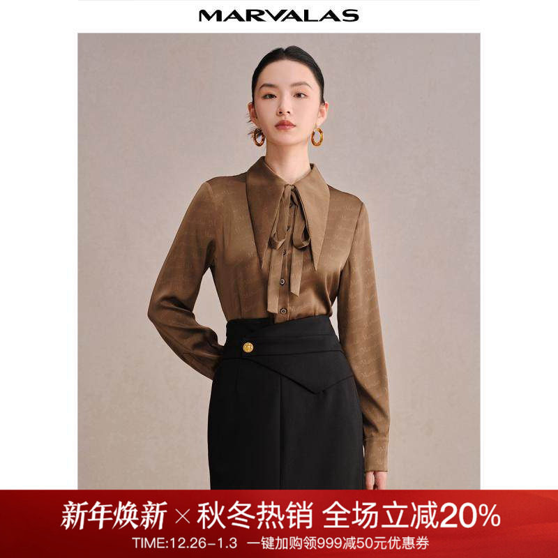 曼德诗衬衫女2025冬季新款字母印花时尚小上衣通勤OL抗皱雪纺衬衣
