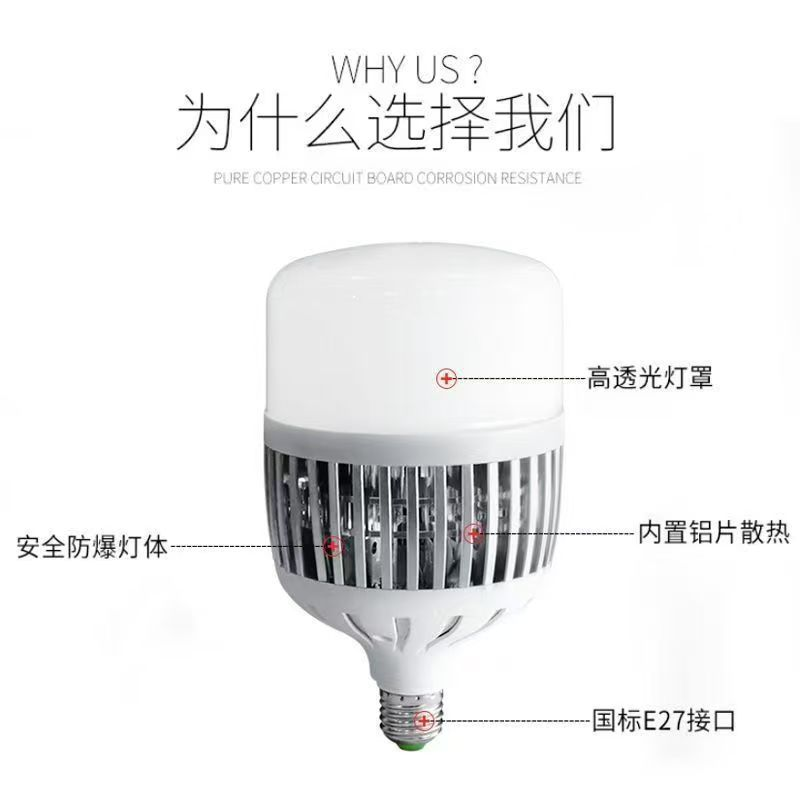 LED节能球泡高亮E27螺口铝家用照明强光大功率灯泡工厂车间照明灯