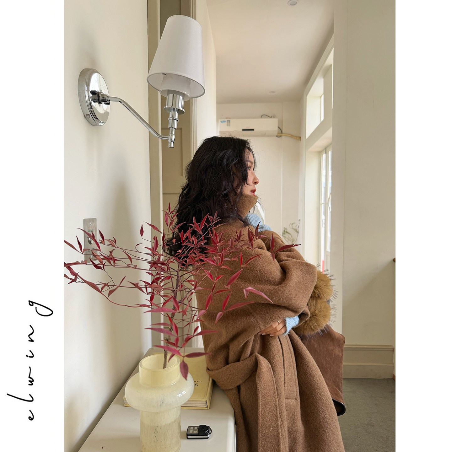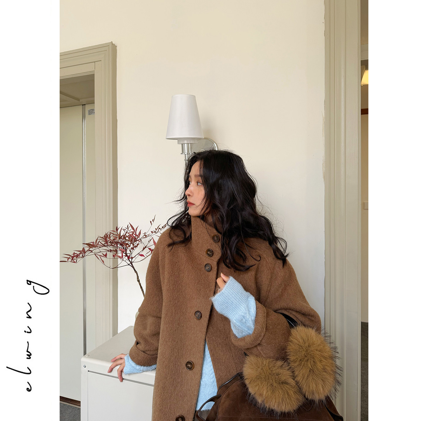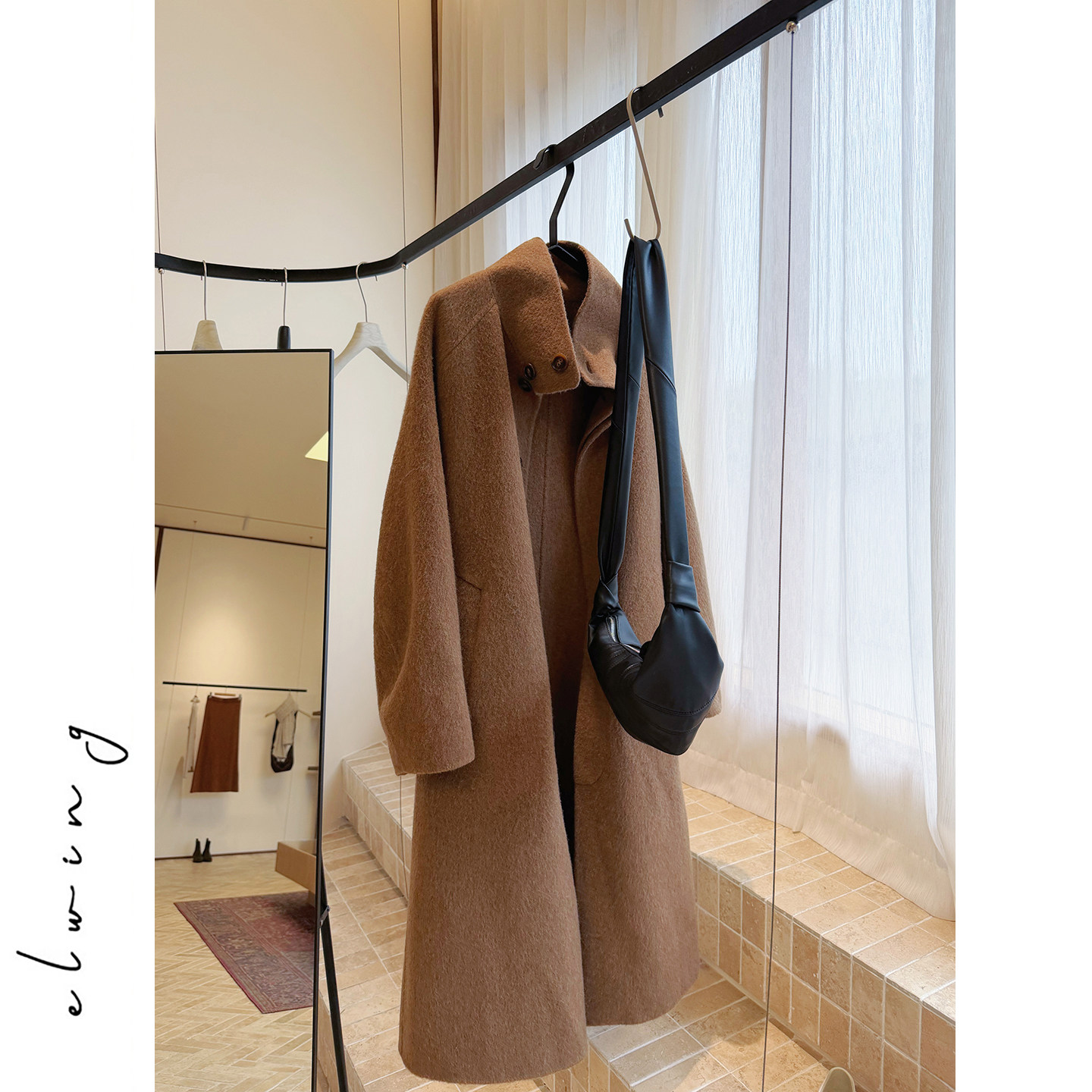 Elwing原创骆驼绒羊毛轻盈保暖立领长款大衣冬季新款双面毛呢外套