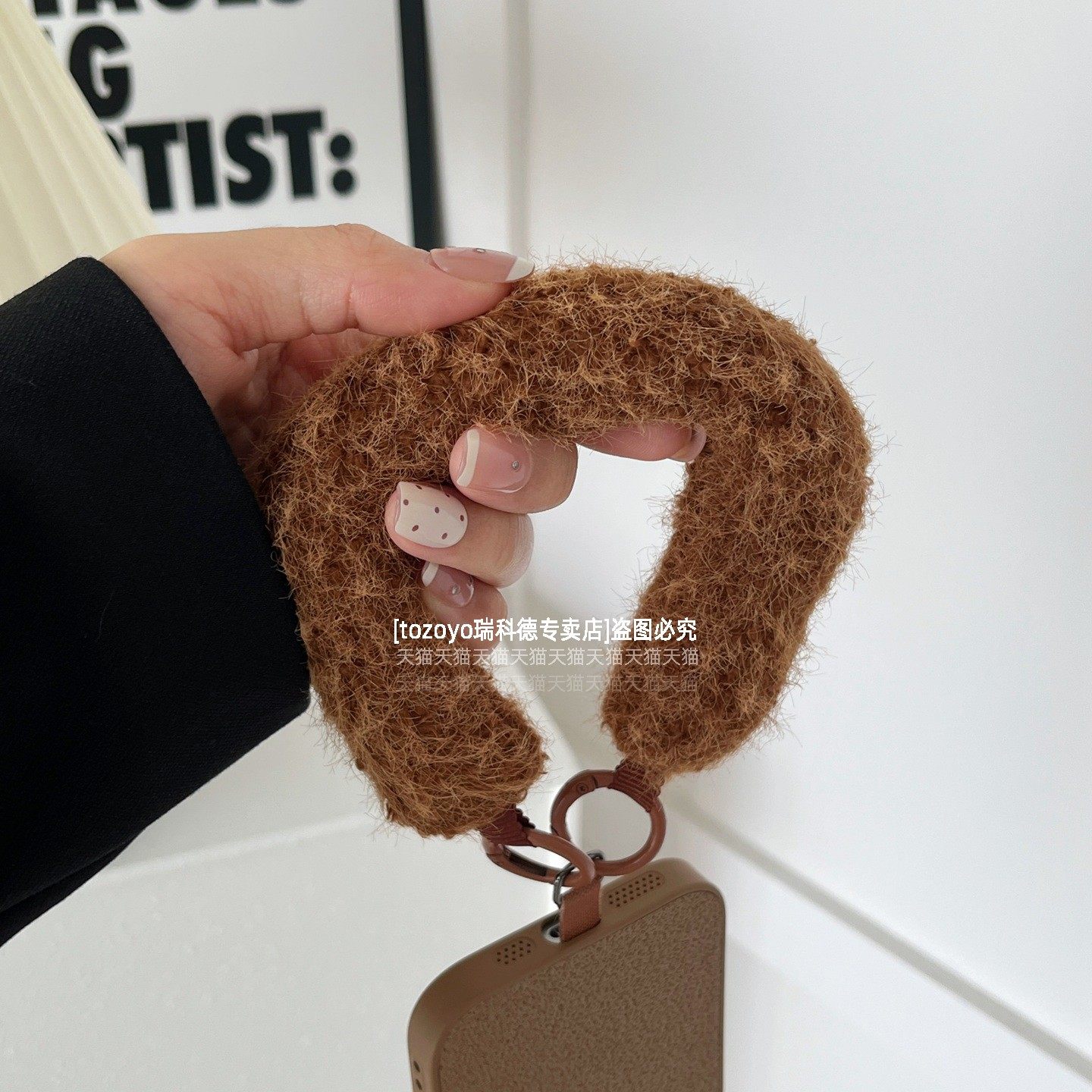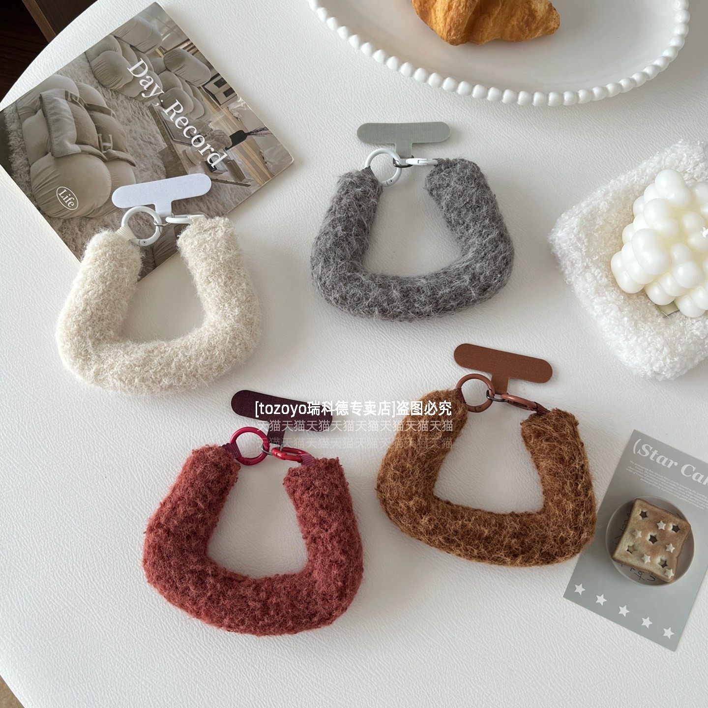 手工羊毛毡手机挂绳毛绒腕带秋冬暖手挂件复古高级感挂手腕短手绳加粗新款旅游防丢挂饰包包钥匙扣ccd垫片壳