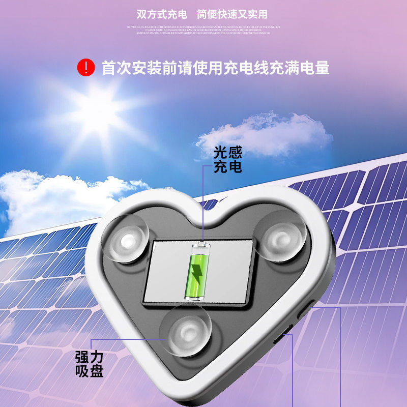 汽车爱心灯太阳能无线装饰灯LED警示灯三角窗后窗车载有趣氛围灯