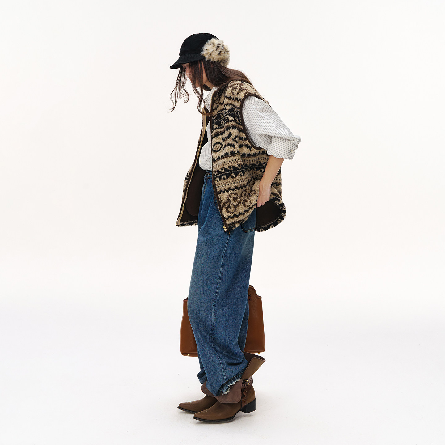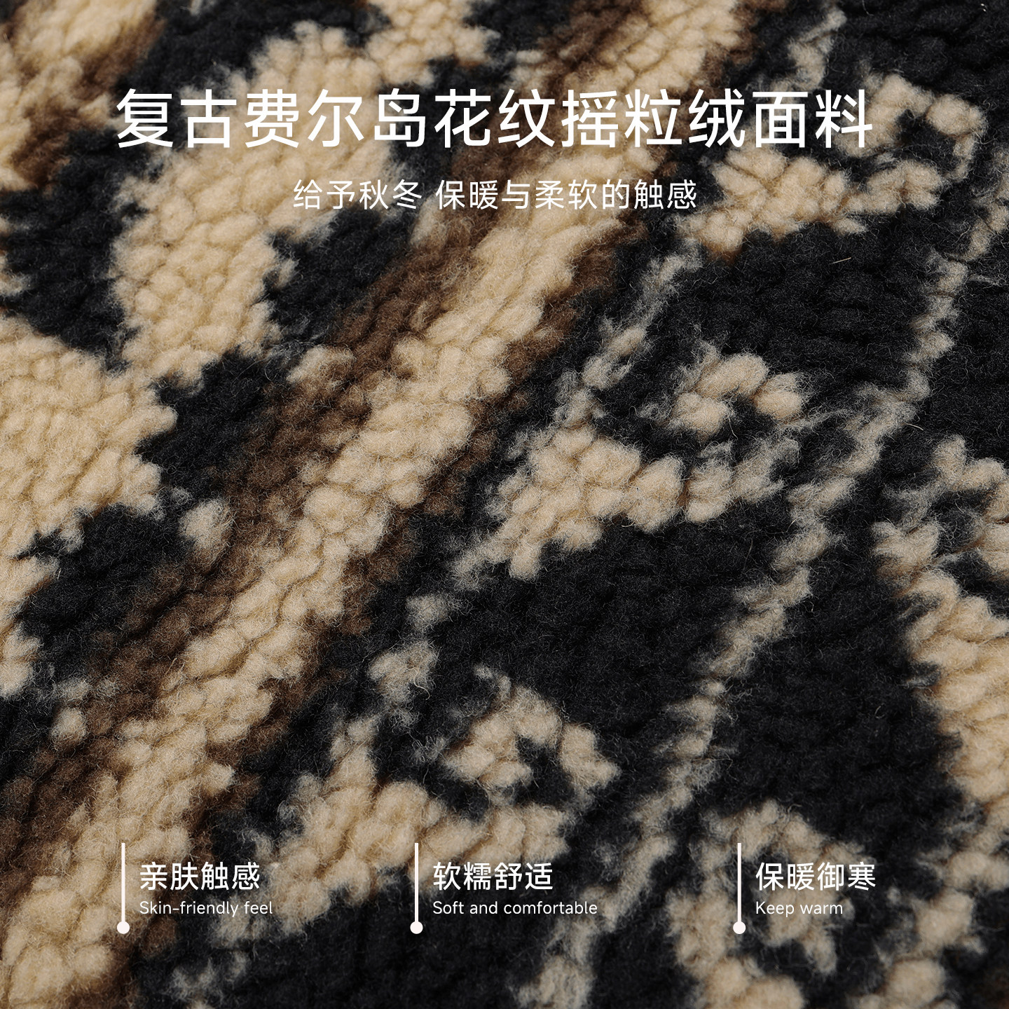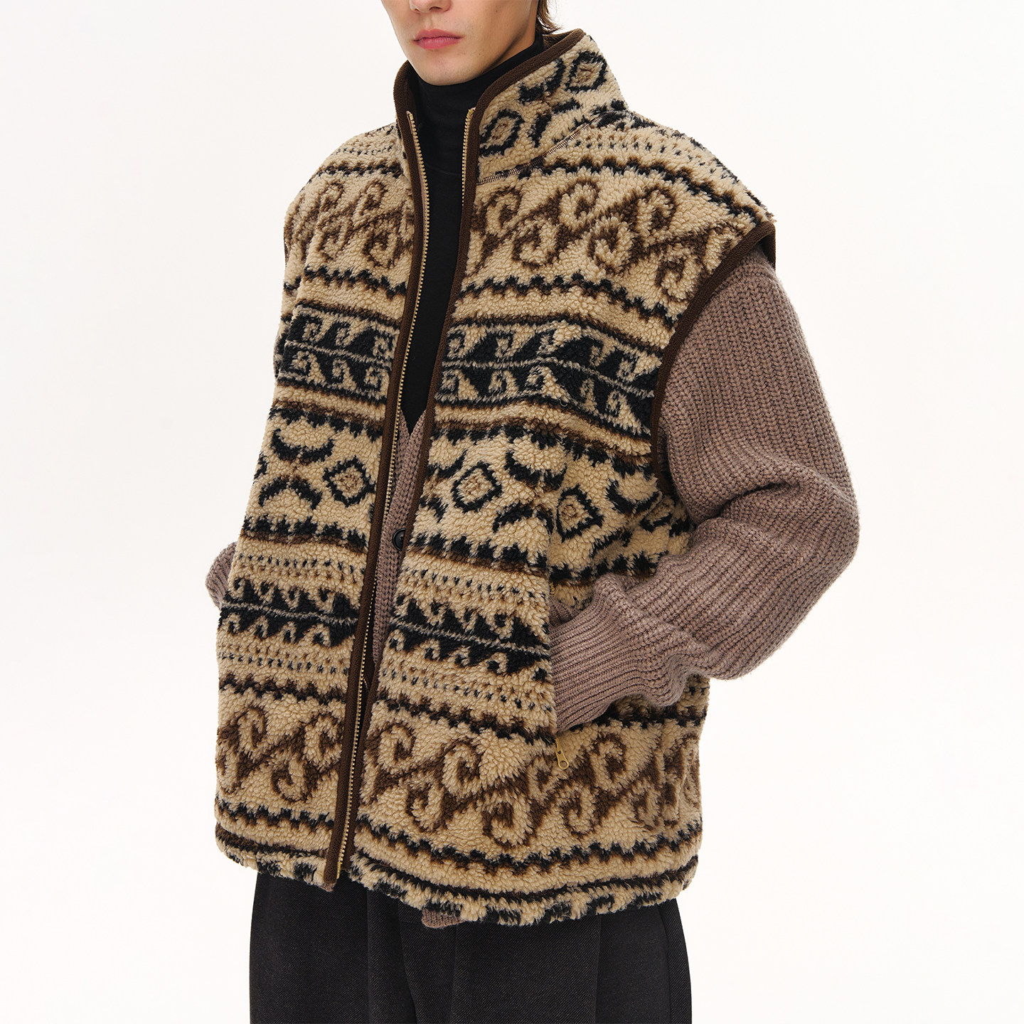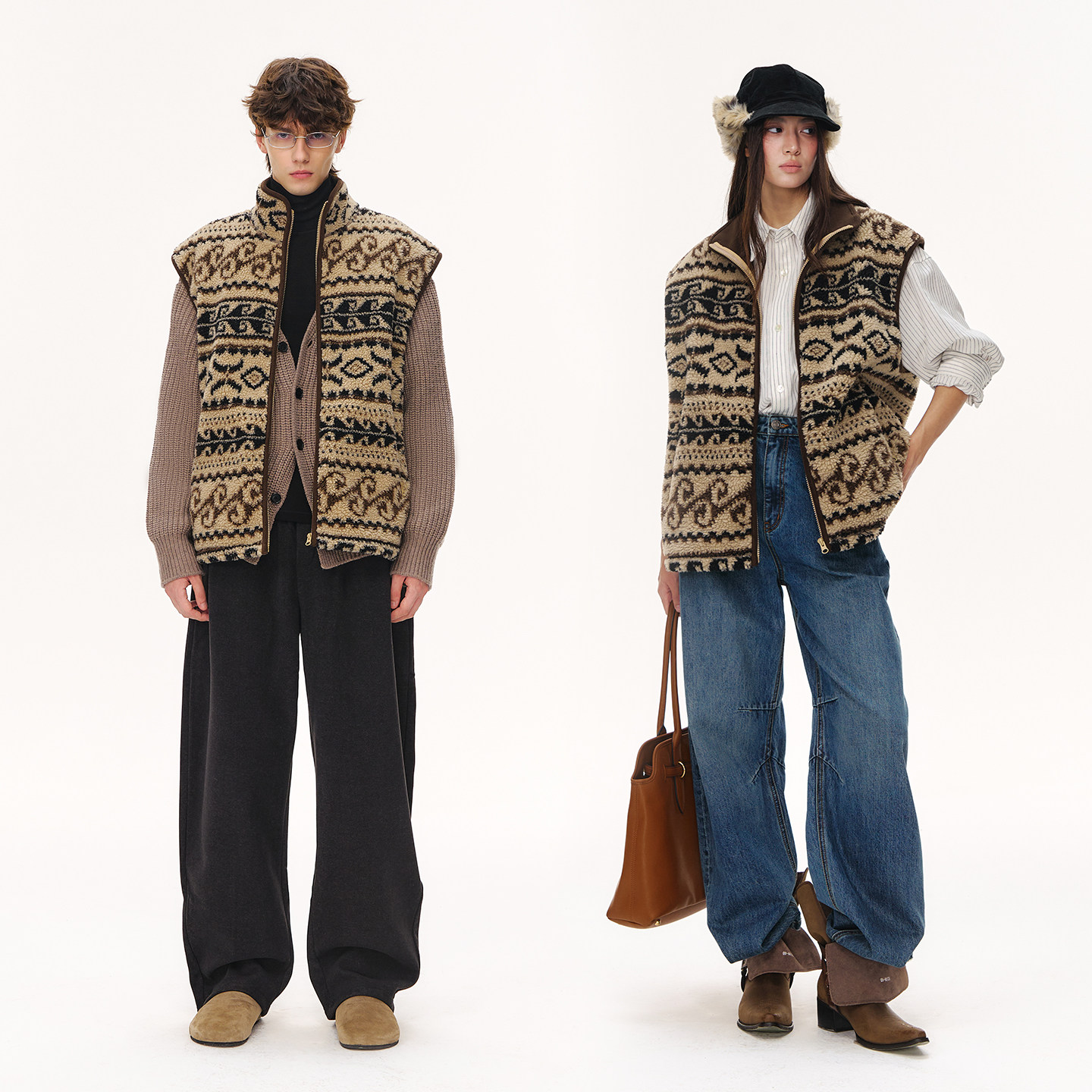CLIMAX VISION费尔岛复古花纹双面摇粒绒高领拉链马甲背心 可内搭