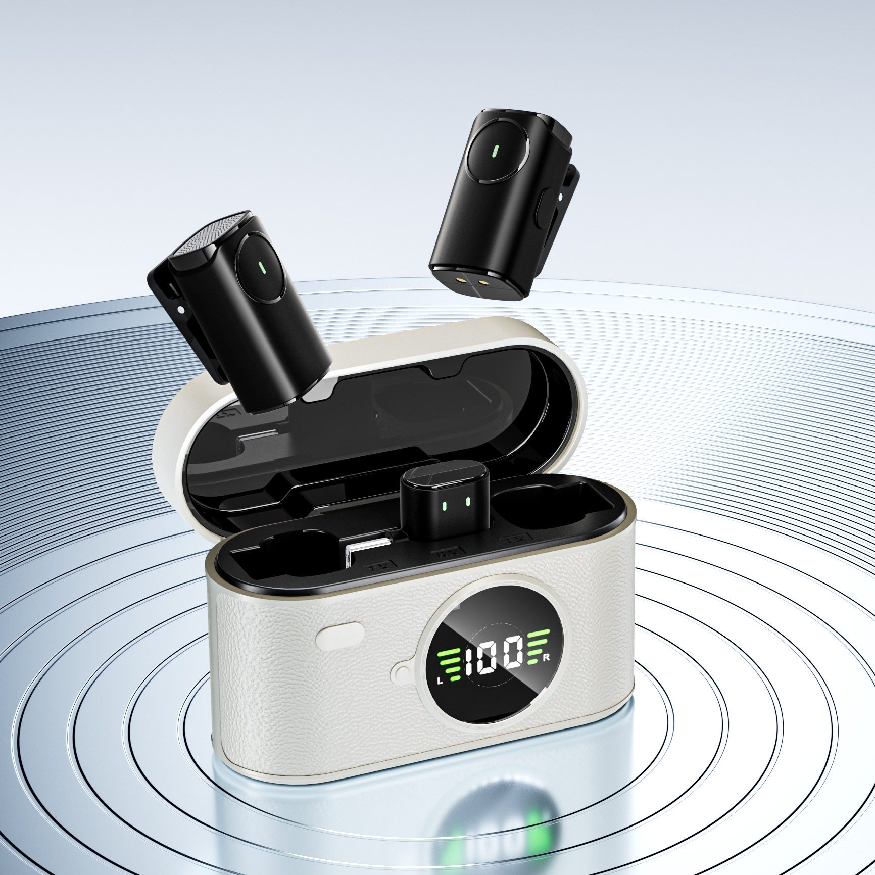 跨境新款AI智能降噪无线领夹麦克风一拖二直播收音录音无线小话筒