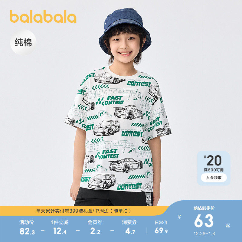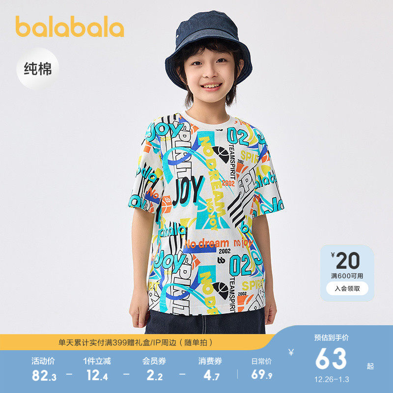 巴拉巴拉童装打底衫儿童短袖t恤男童中大童夏装速干纯棉上衣印花