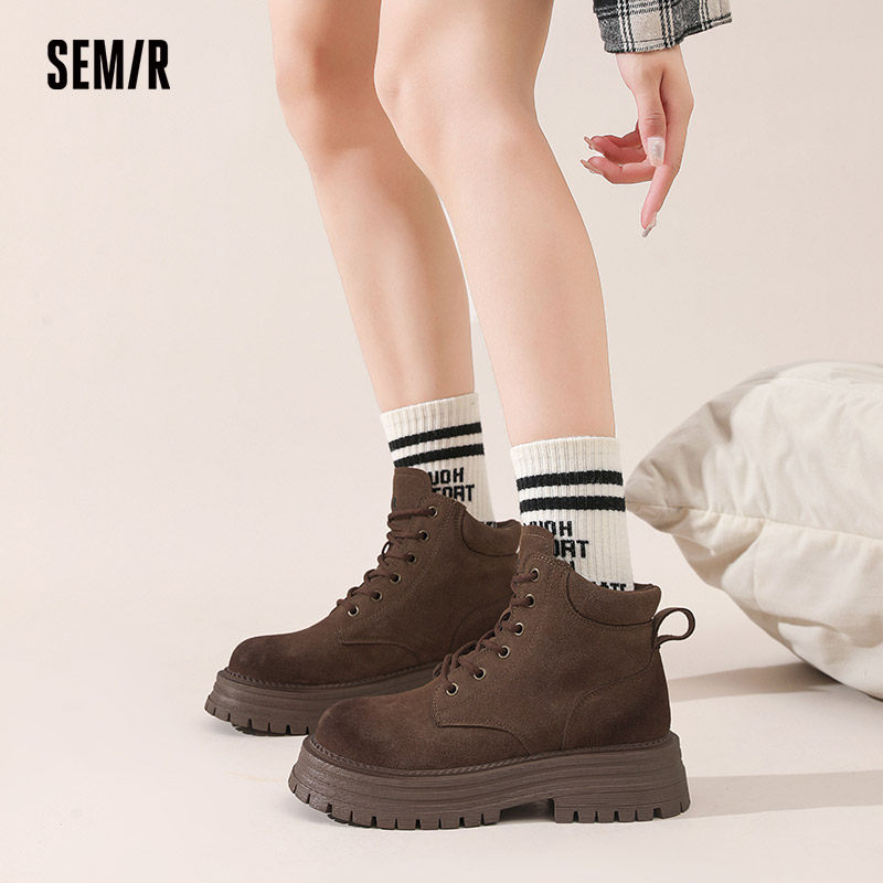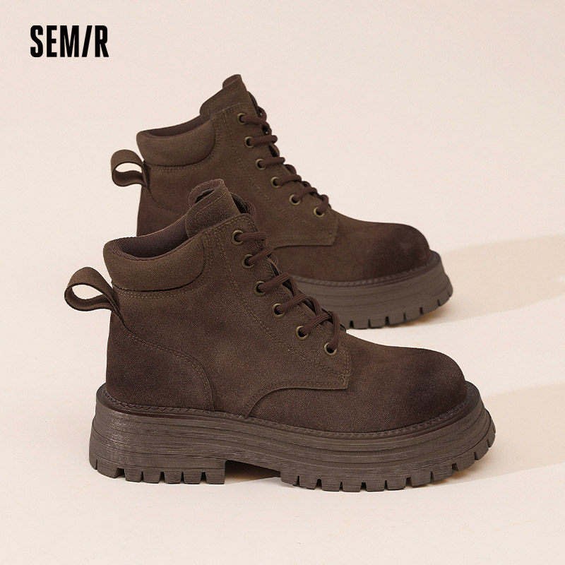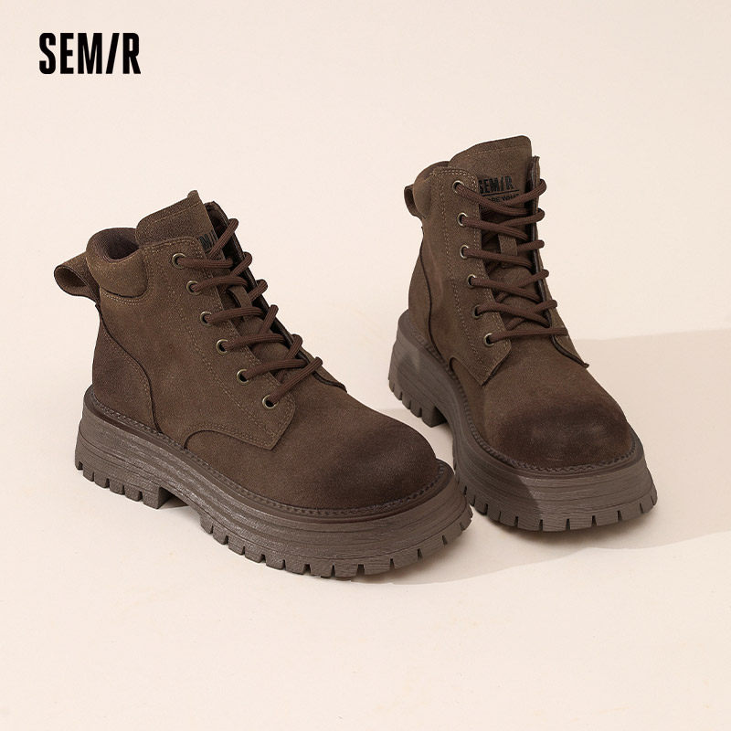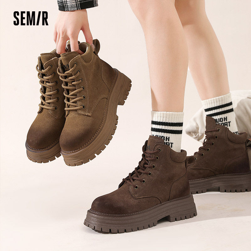 Semir女鞋马丁靴2025秋冬季新款爆款复古增高英伦风大黄靴短靴女
